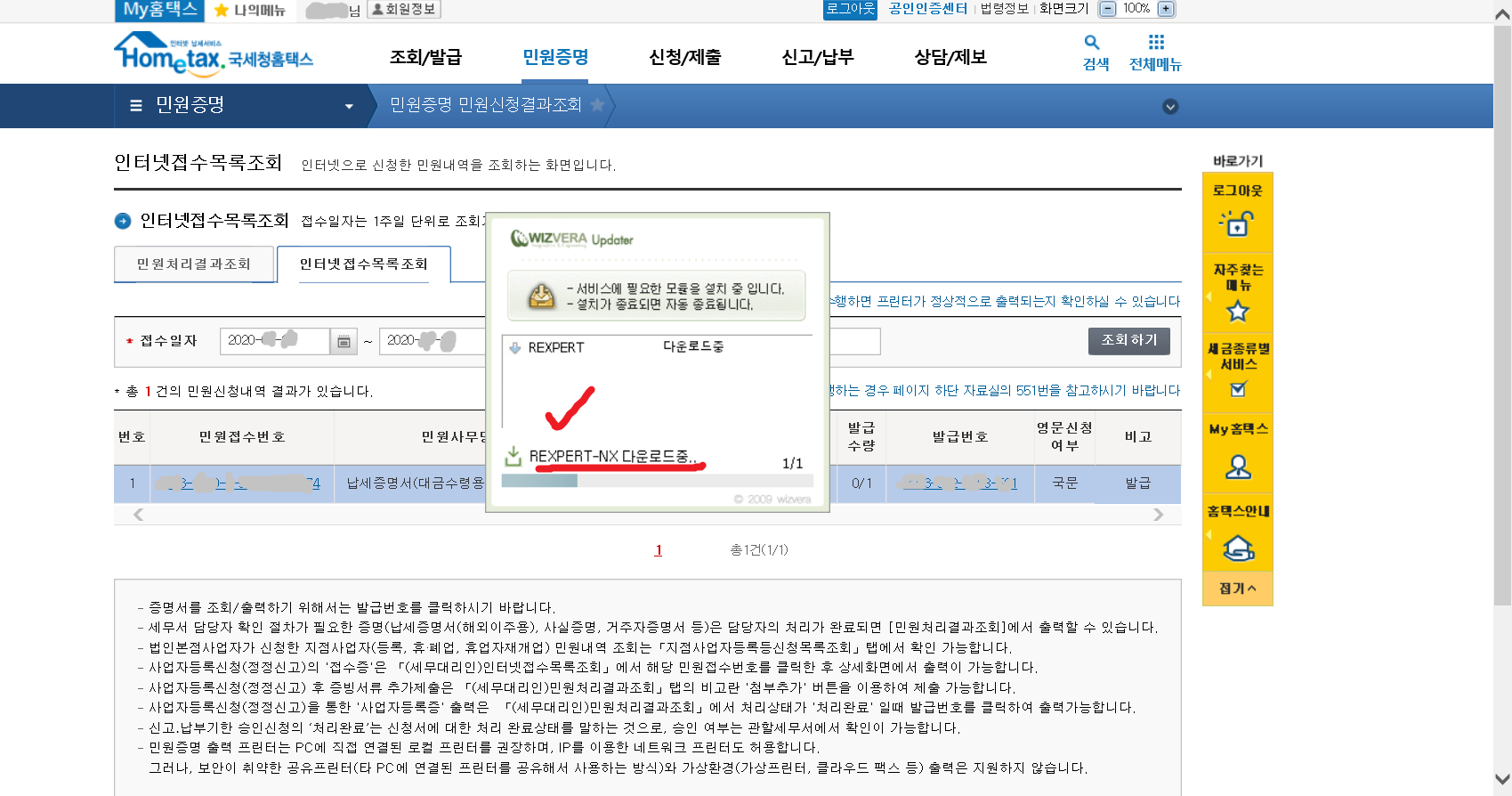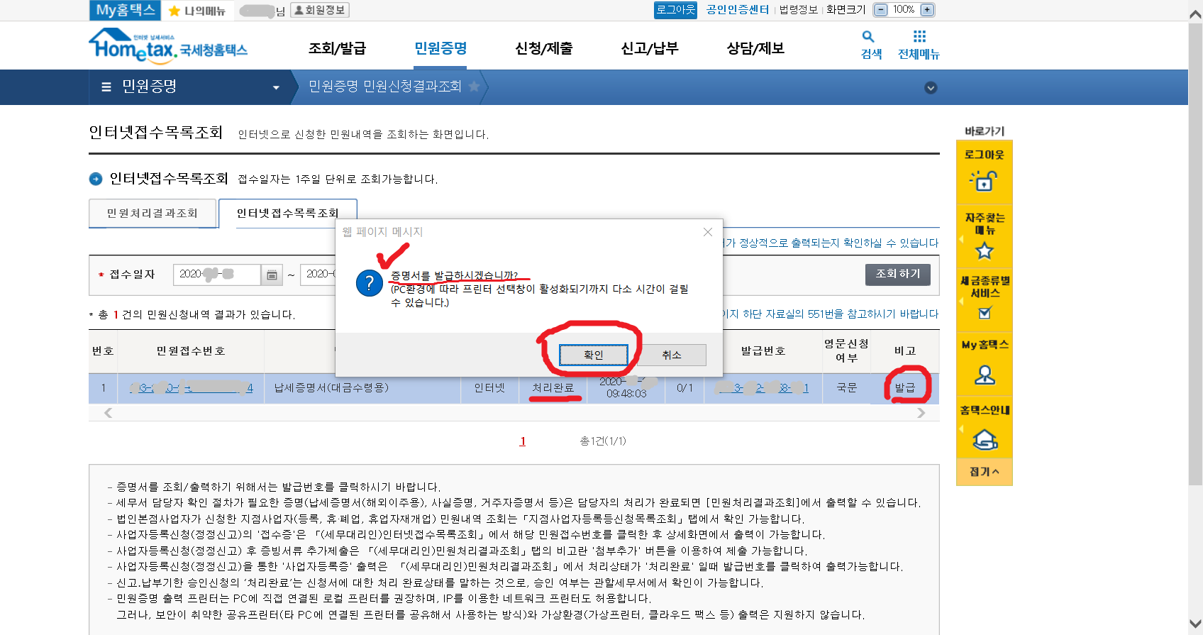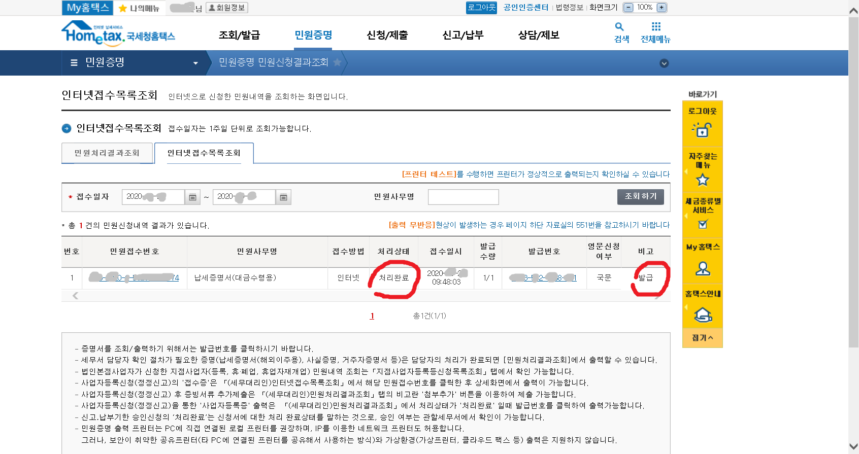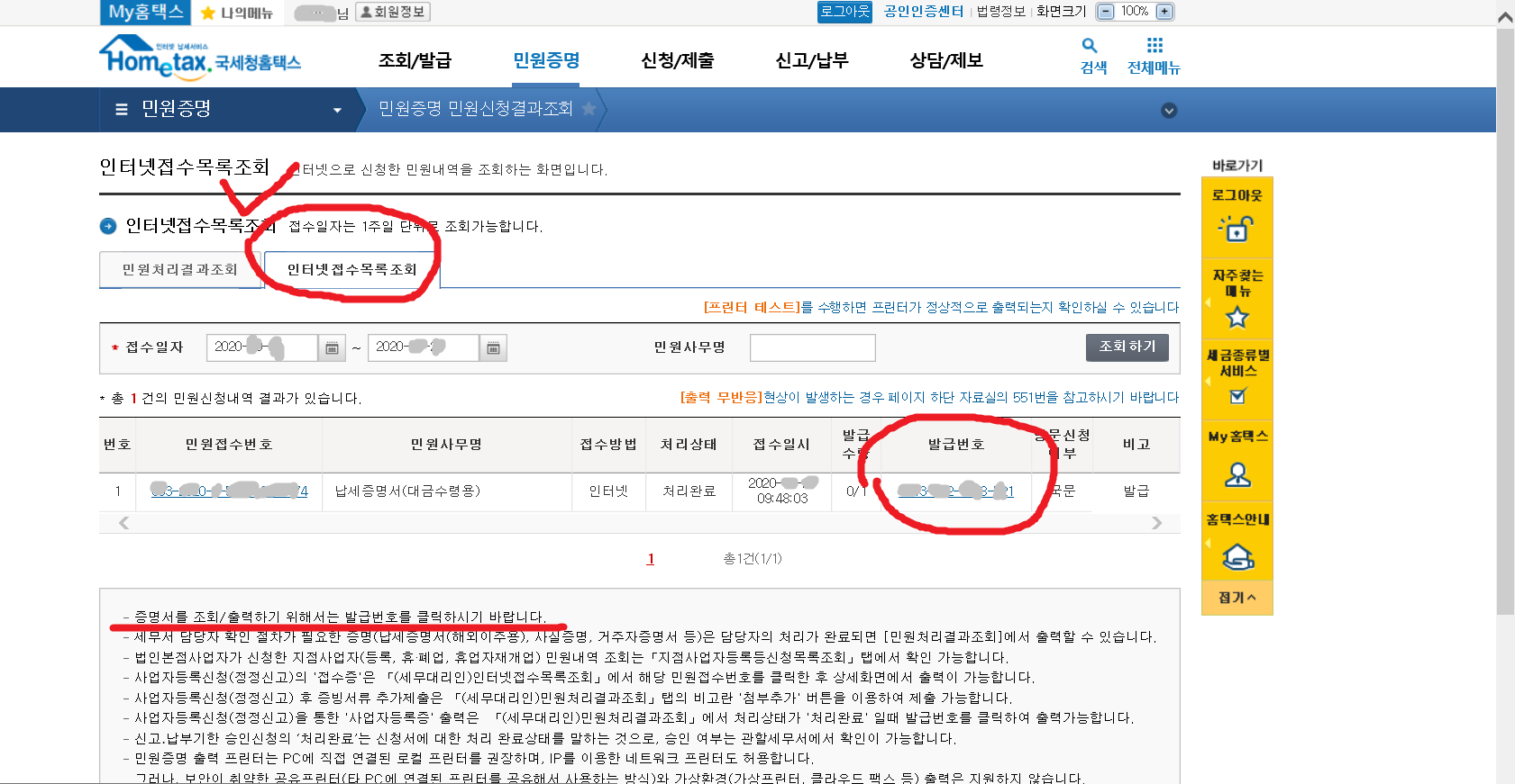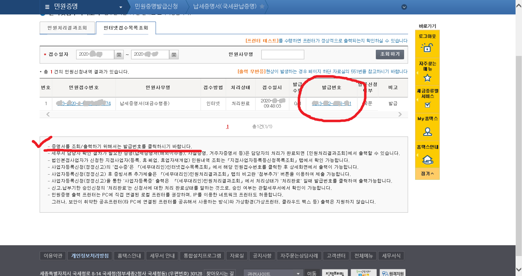 7. 이제 납세증명서(국세완납증명서)를 발급받아야겠지요.