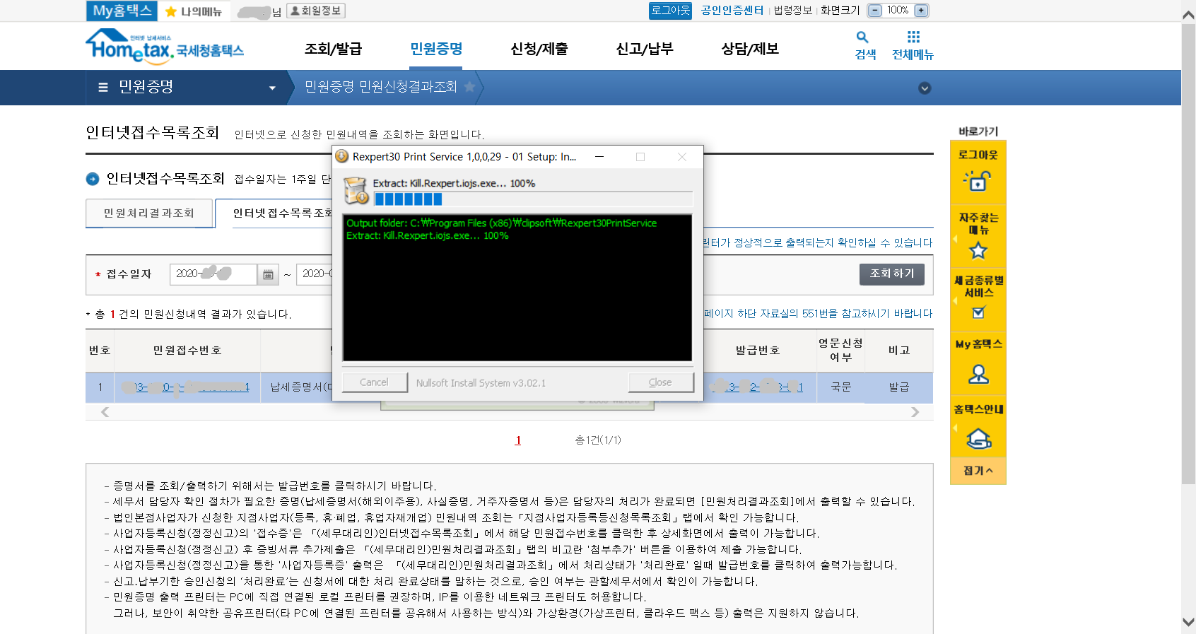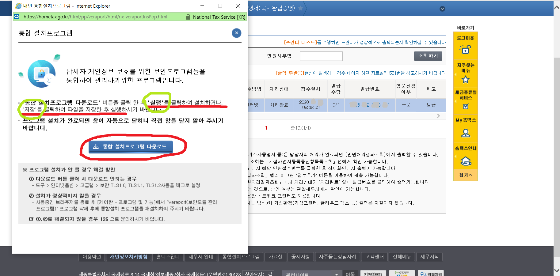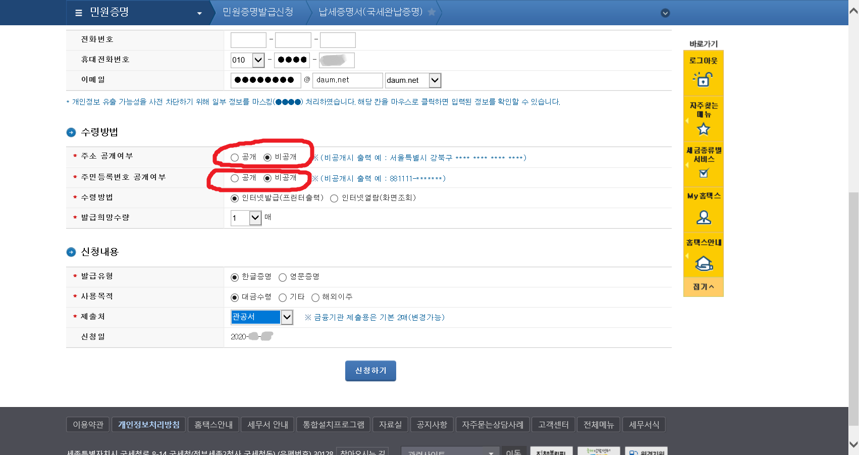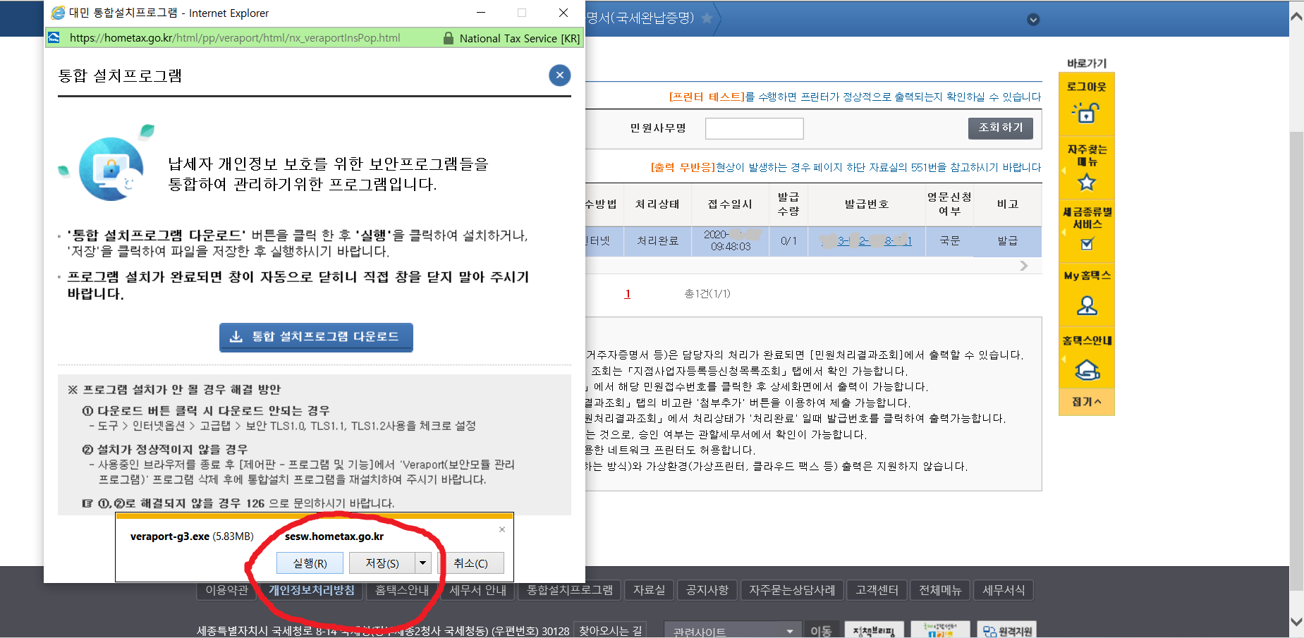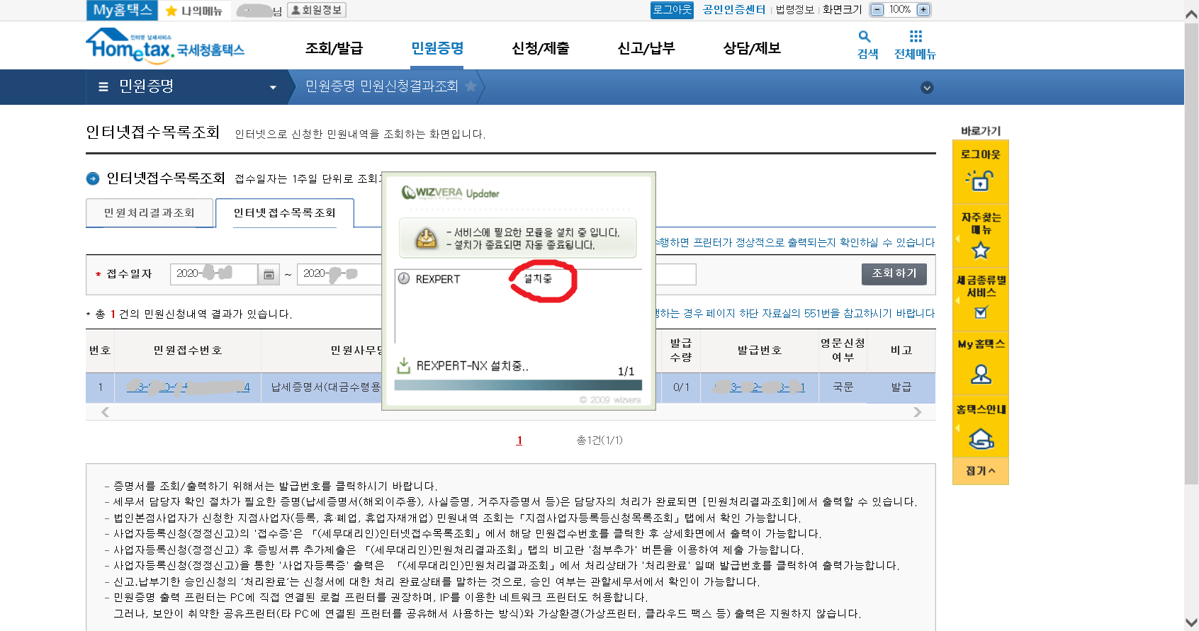 7. 이제 납세증명서(국세완납증명서)를 발급받아야겠지요.