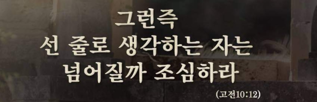 《선 줄로 생각하는 자는 넘어질까 조심하라》는 말이 있습니다. 언제나 누구나 명심해야할 말이 아닐까 생각되네요💯