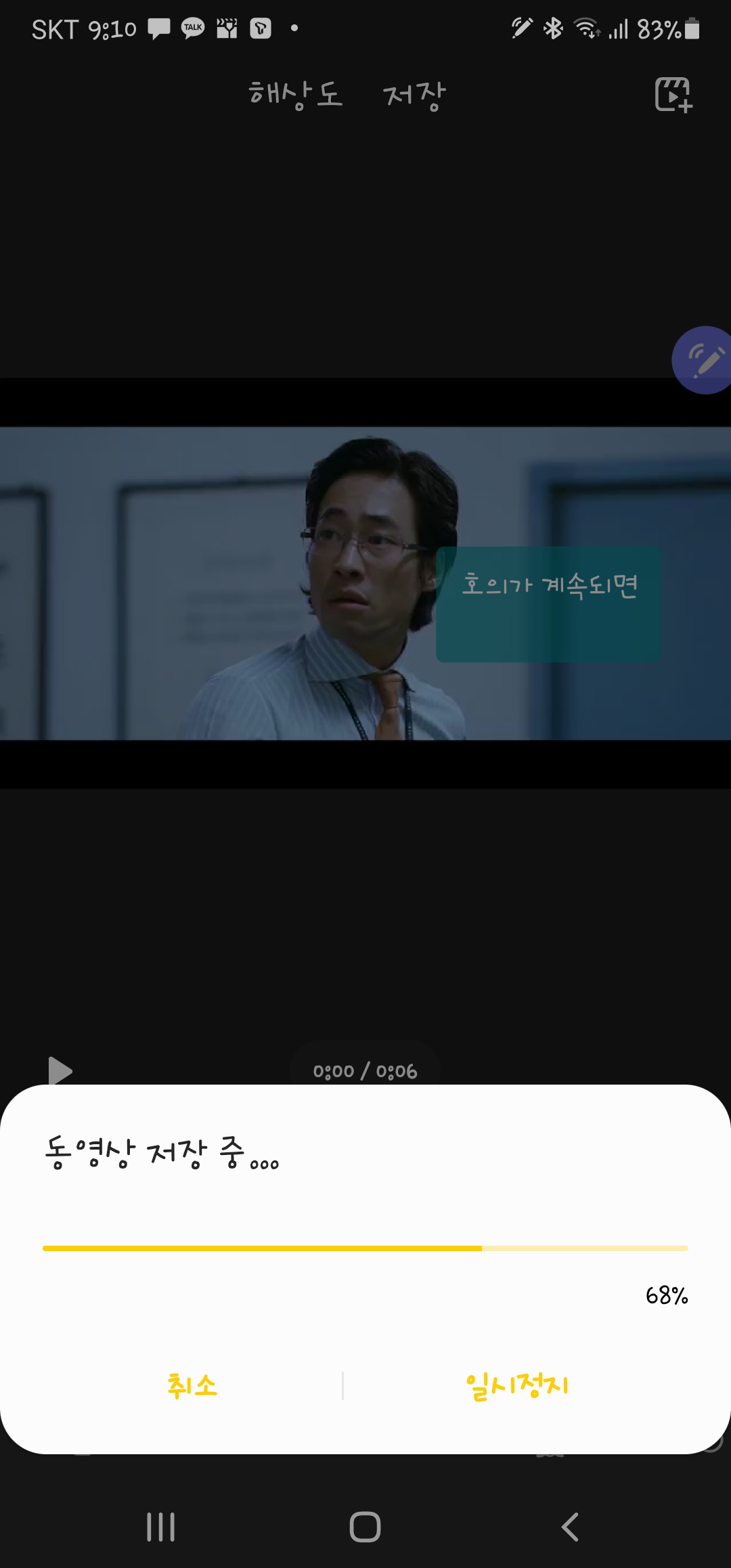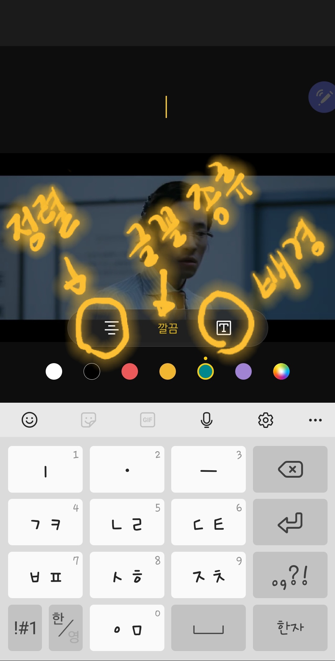 8. 입력 완료 후에 화면을 터치하거나, 뒤로 가기 버튼을 누르면 동영상 위로 글씨가 올라 갑니다.