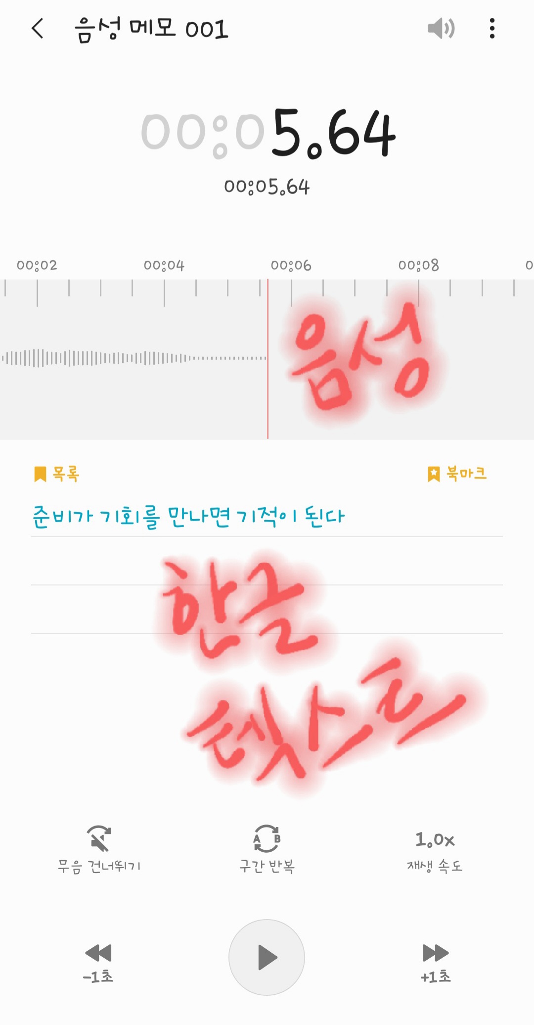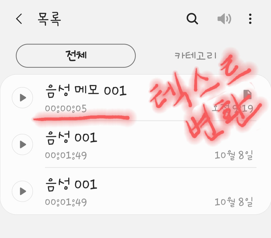 오늘은 《한글날》이라 지난 번 음성녹음 기능에 이어 《음성녹음 할때 한글 텍스트로 변환》하는 방법을 올립니다.