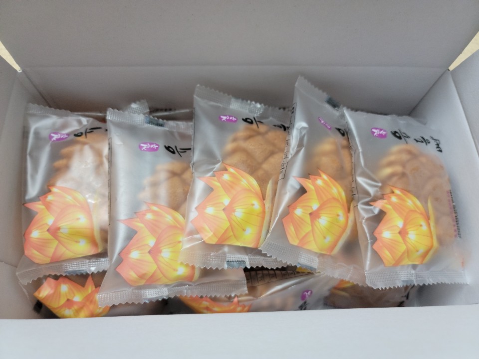 박스를 여니 들어있는 낱개로 소포장된 빵들이 보입니다. 《개별포장》 나쁘지 않네요👏👏