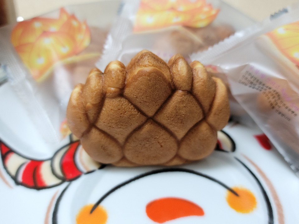 빵을 꺼내보니 연꽃모양이 훨씬 더 선명하게 나타나네요.