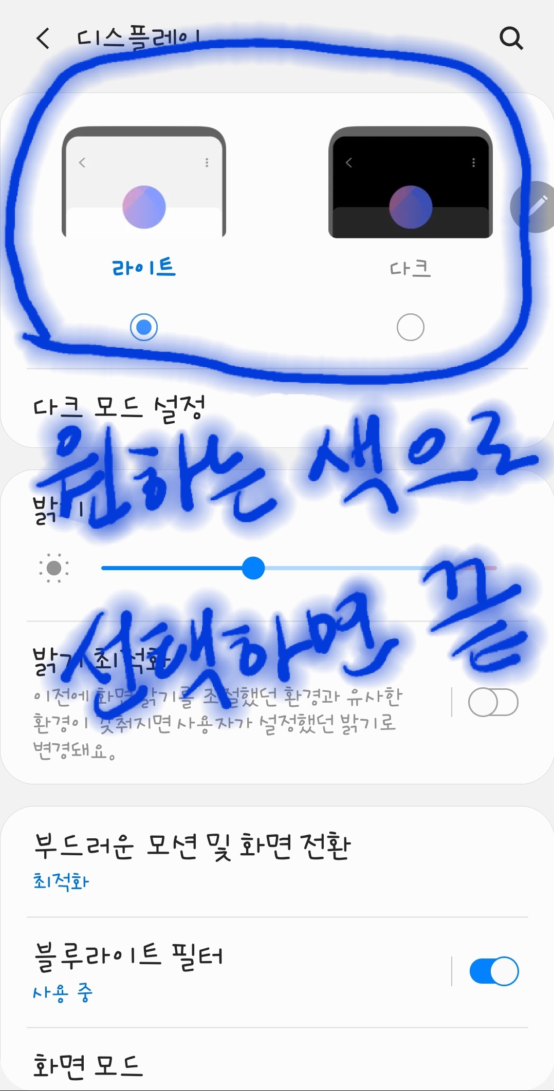 갤럭시노트20 울트라에서 블랙화면(다크모드) 예약설정하기