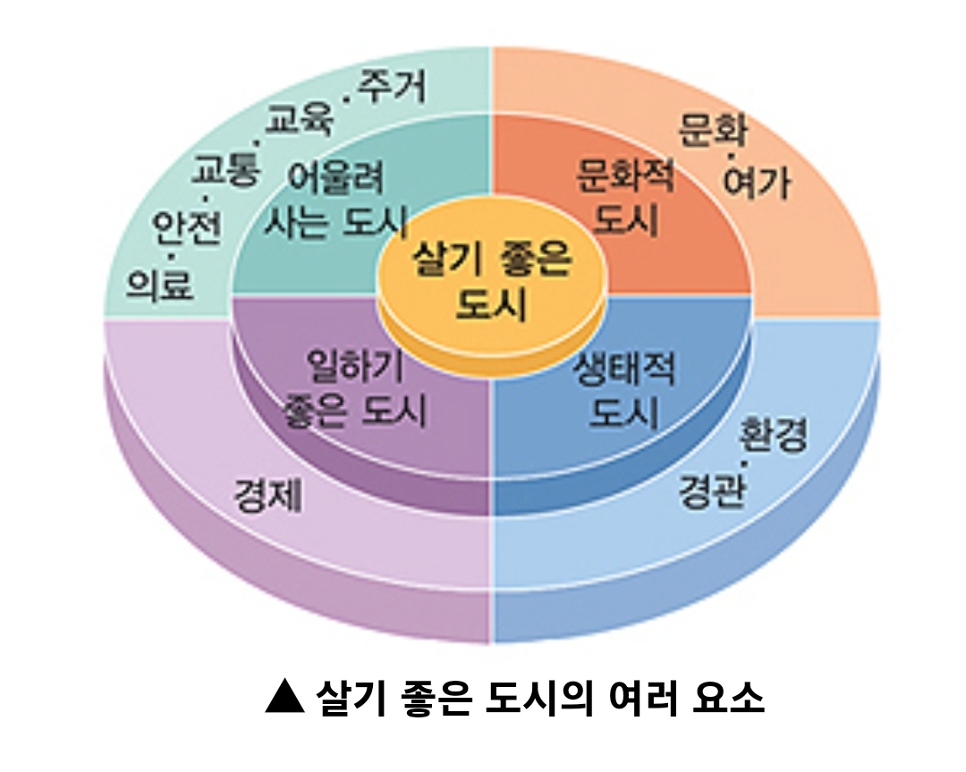 Home > 중등 > 사회 > 사회① 경제력, 심리적 안정성, 녹지 공간, 여가 시설 같은 삶의 질을 충족시켜주는 요소가 잘 갖추어져 있는 도시 살기 좋은 도시란 경제 수준이 높으면서 주민들이 안정된