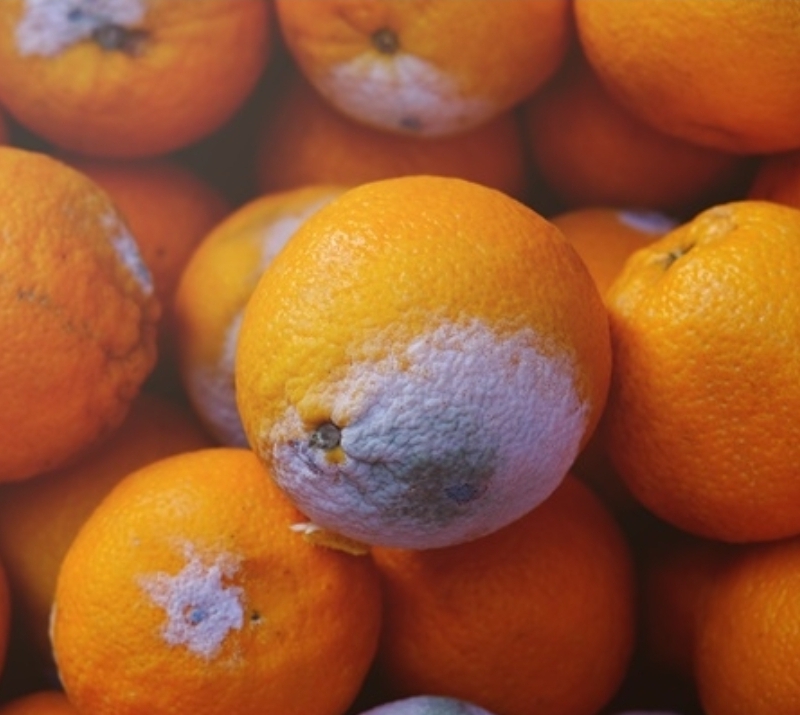 🔺️귤은 서로 맞닿은 부분에서 곰팡이가 생기기 쉽다. 귤 곰팡이는 녹색곰팡이와 청색곰팡이가 대부분이다. 눈에 일부만 보여도 귤처럼 무른 과일에는 곰팡이가 깊숙이 침투해 있을 가능성이 높다.