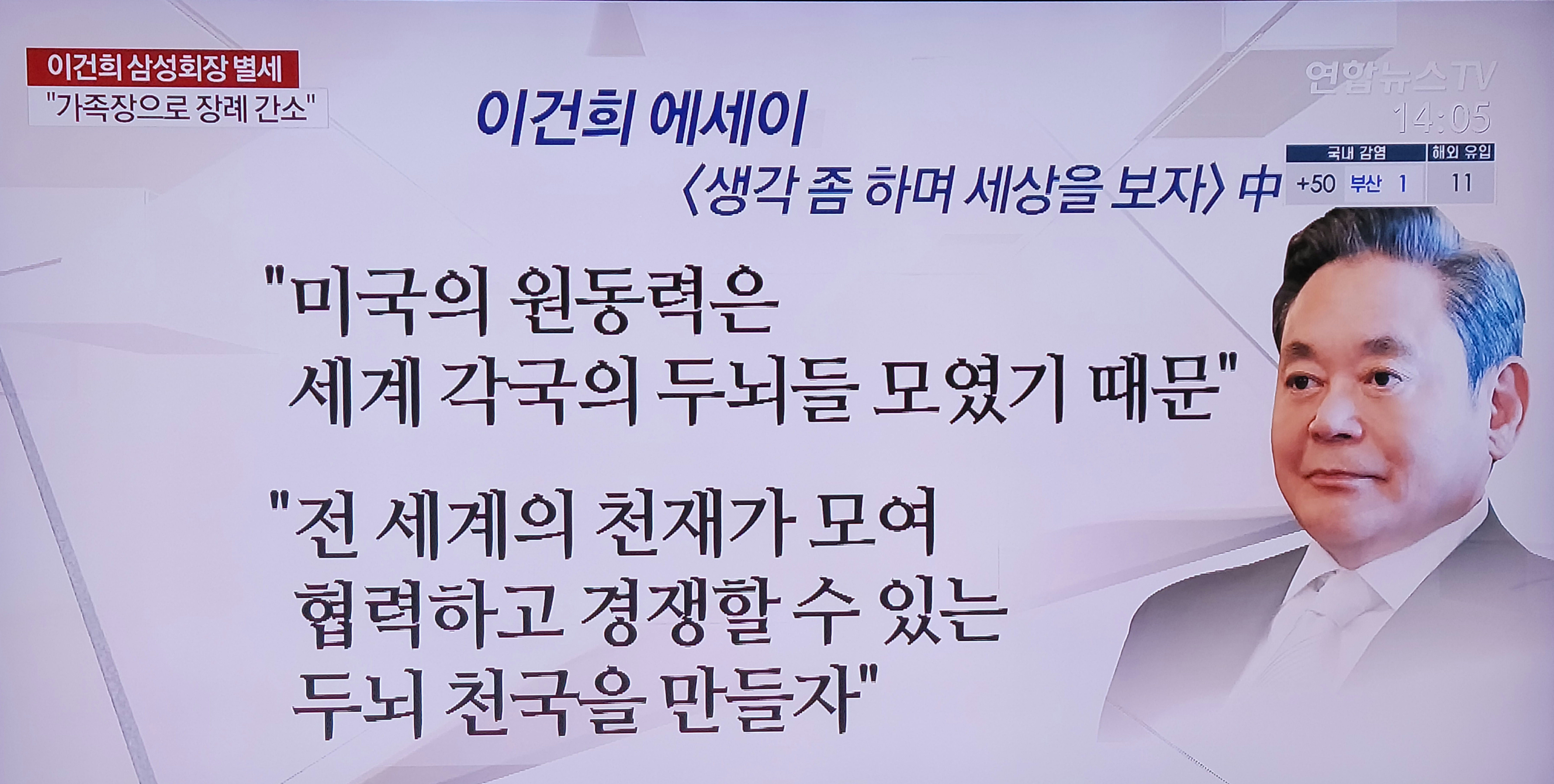 2020년 10월 25일, 03:59 이건희 삼성그룹 회장이 향년 78세로 별세했습니다.