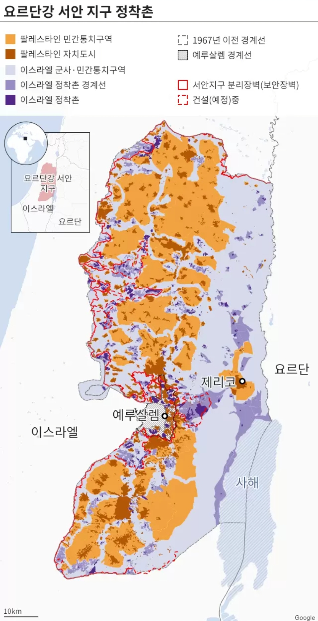 1967년 전쟁으로 이스라엘이 요르단강 서안 지구를 점령한 이후 이 지역에선 유대인 정착촌이 계속 늘어나고 있다. UN은 지난해 기준 약 70만 명에 달하는 유대인이 해당 지역에 거주하는 것으로 추정한다.