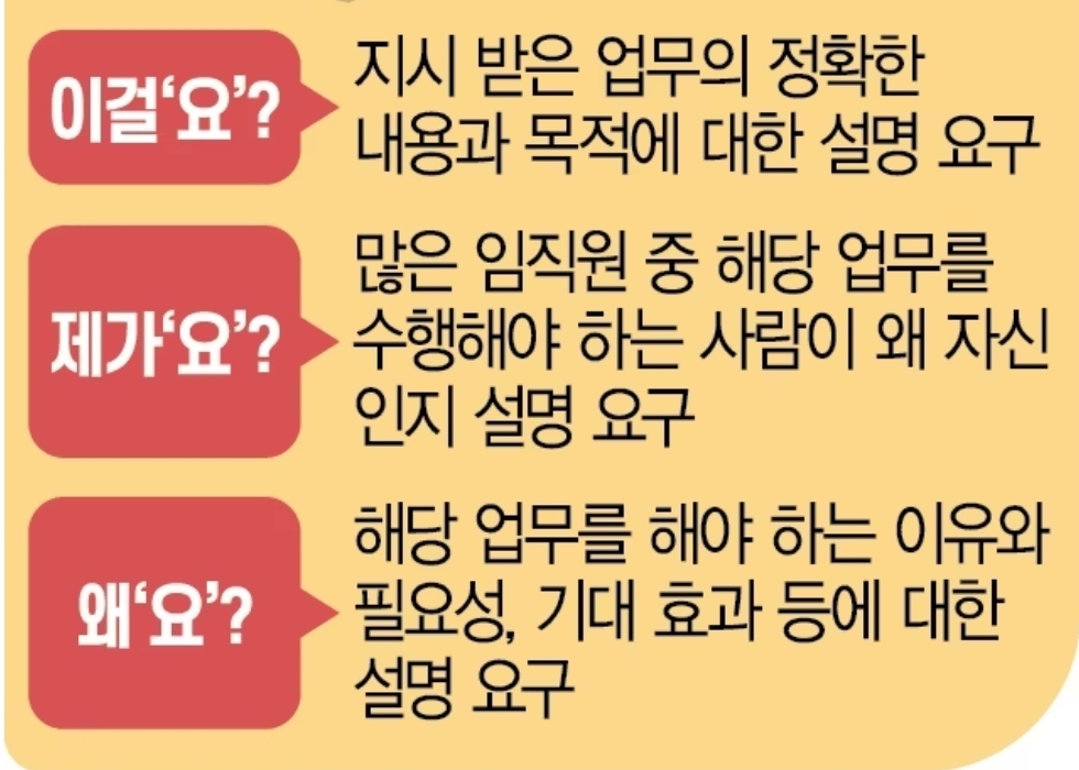 3요 교육을 받은 한 기업의 임원은 “젊은 직원이 ‘이걸요, 제가요, 왜요’라고 되묻는다고 해서 그들이 근로 의욕이 없거나 불성실하다는 의미로 받아들여서는 안 된다”며 “MZ세대는 기성세대와 달리 3요에 대해 납득을 해야 업무 지시를 받아들이는 경향이 있다. 이들의 특성을 이해하고 그 눈높이에서 바라보는 자세가 필요한 것 같다”고 설명했다.