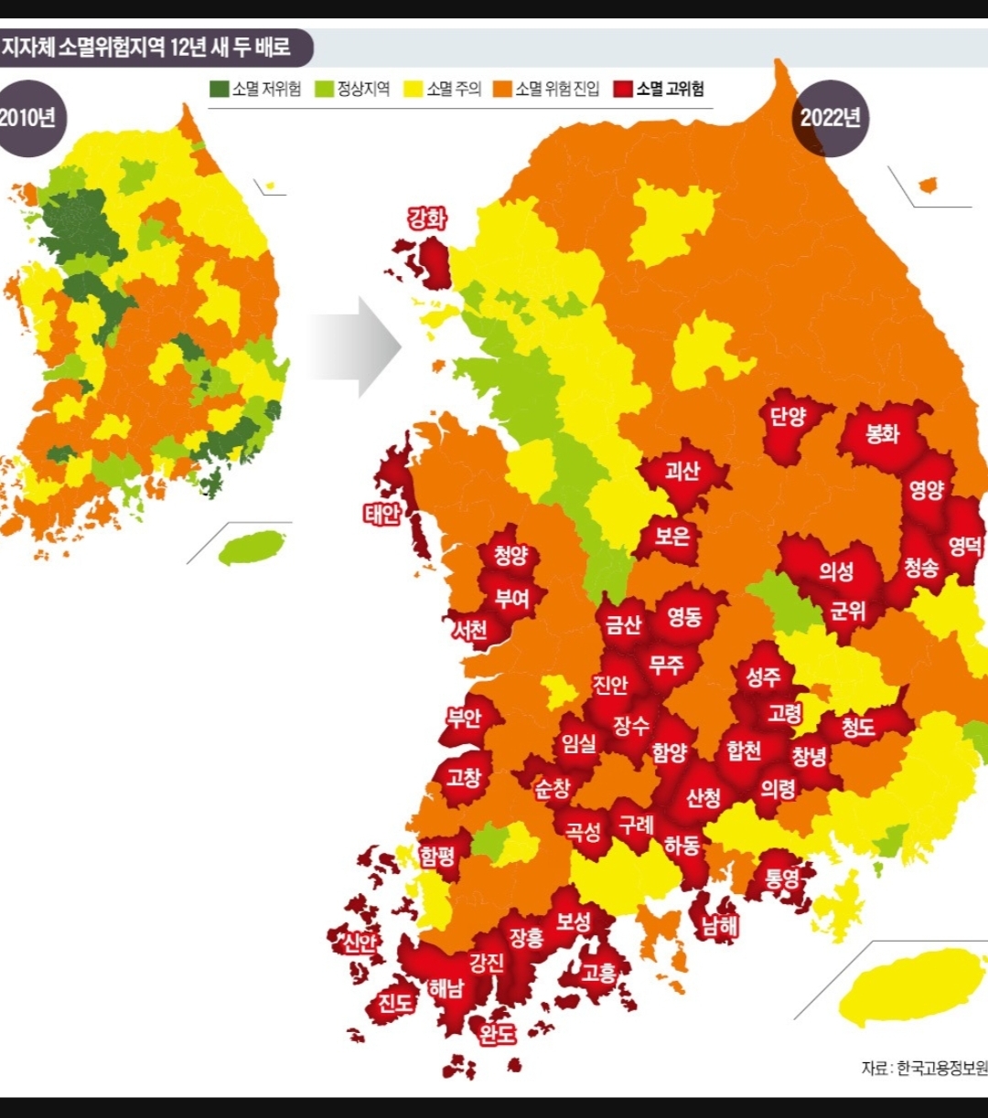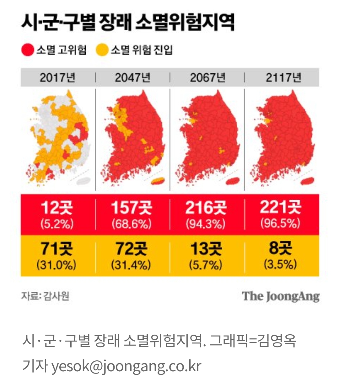 인구 재앙…지자체 절반 '소멸위험', 줄어드는 인구, 소멸하는 한국 군위 10명 사망 때 1명 출생 부산 영도 10년간 21% 감소 "2100년 한국 인구 1800만명"