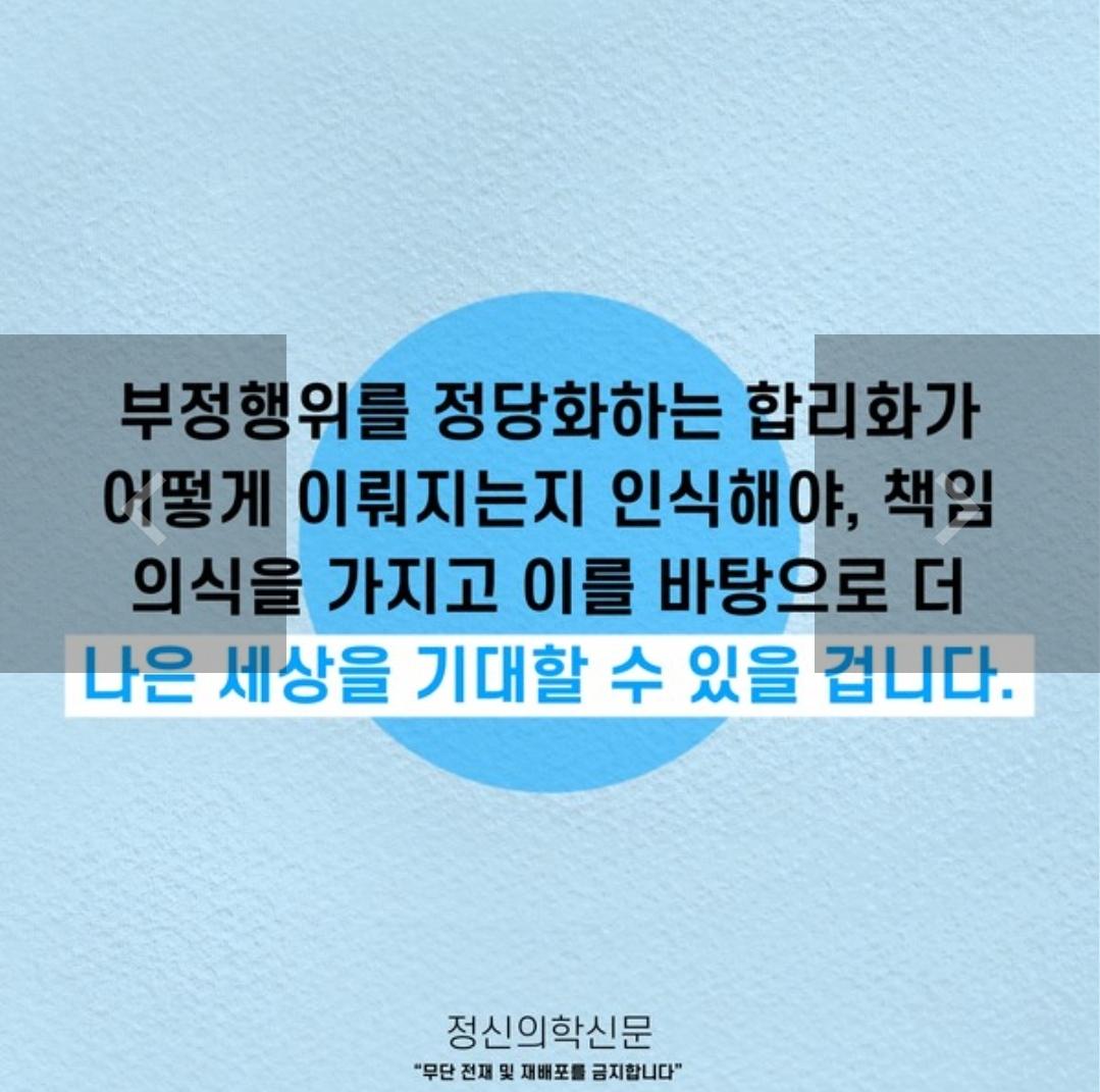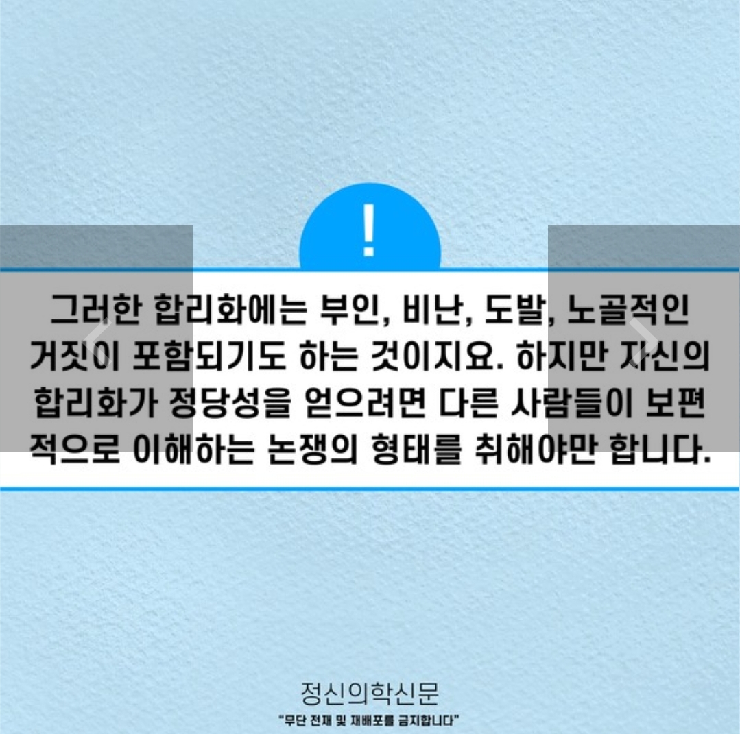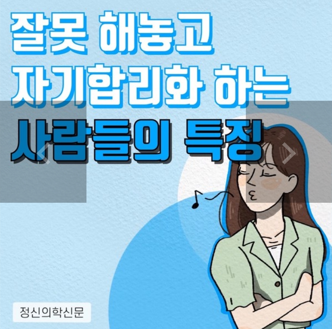 [카드뉴스] 잘못해놓고 자기합리화 하는 사람들의 특징 - 정신의학신문