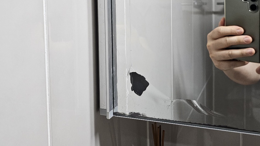 다들 욕실에 보면 수납장이 있잖아요, 그런데 어느날 보니 저희집 욕실 수납장 거울이 겉은 멀쩡한데 속에 있는 은색 부분이 떨어져 나갔지 않겠어요😰