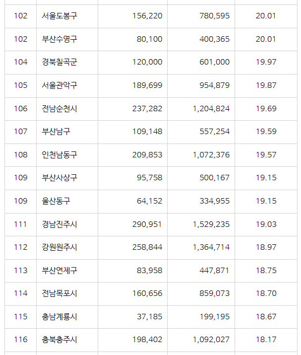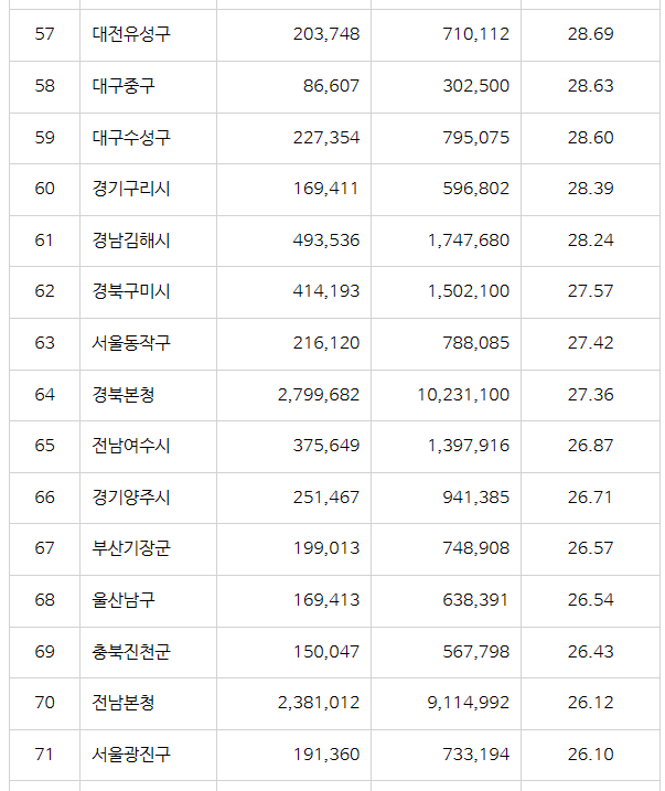 | 2023년 부산시 자치구별 재정자립도 순위 (0) | 2024.01.16 |