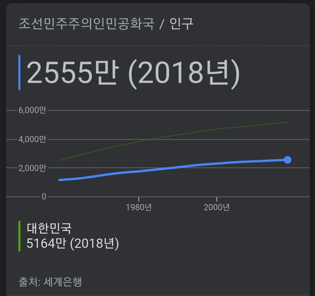 ● 북한의 인구수에 비해