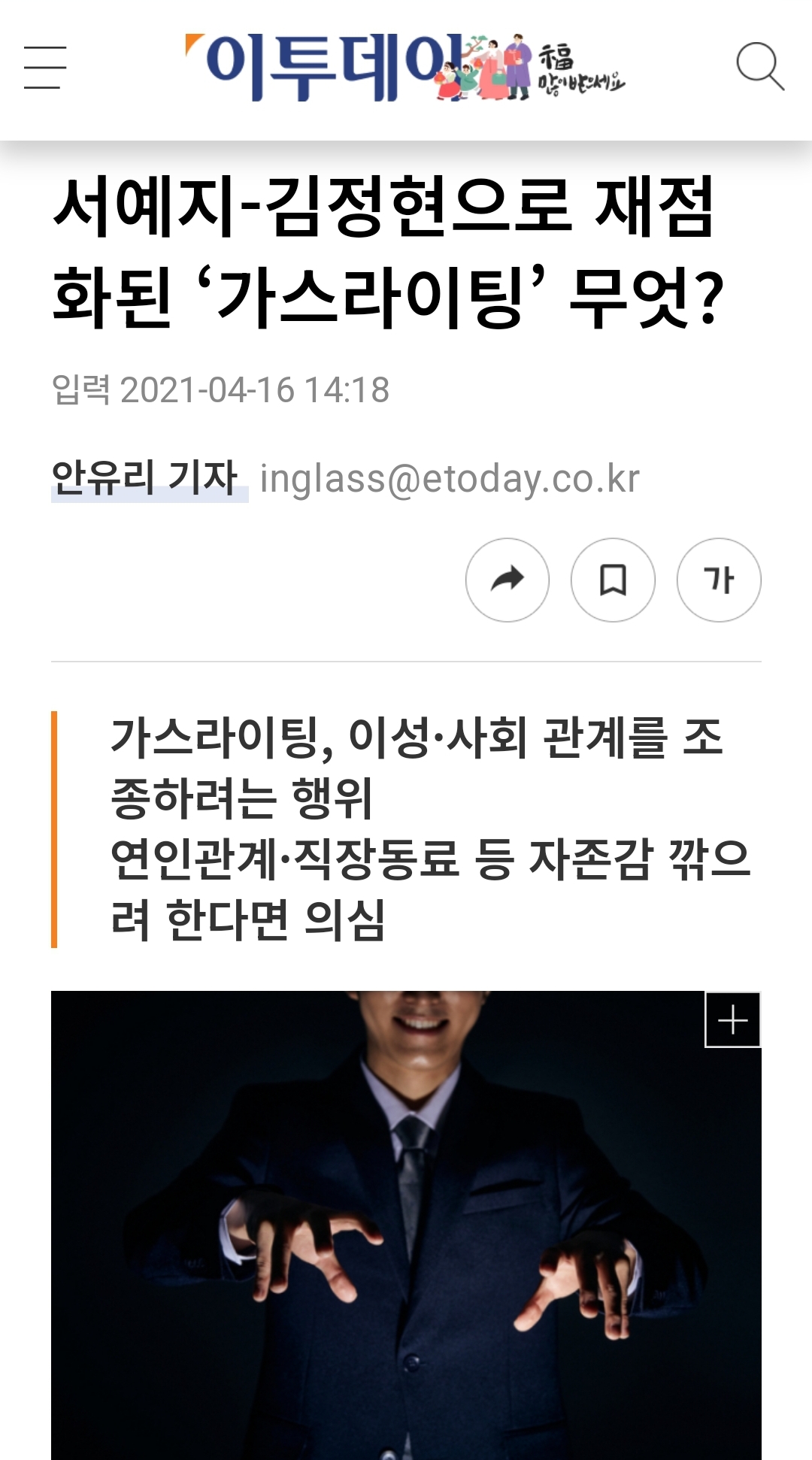 서예지-김정현으로 재점화된 ‘가스라이팅’ 무엇? 2021.04.16