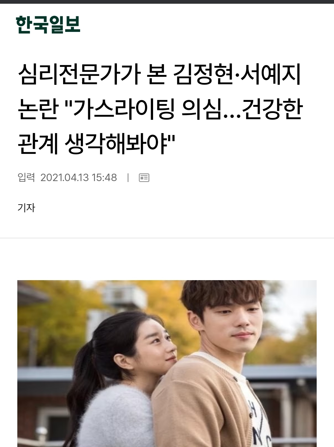 심리전문가가 본 김정현·서예지 논란 "가스라이팅 의심…건강한 관계 생각해봐야" 2021.04.13