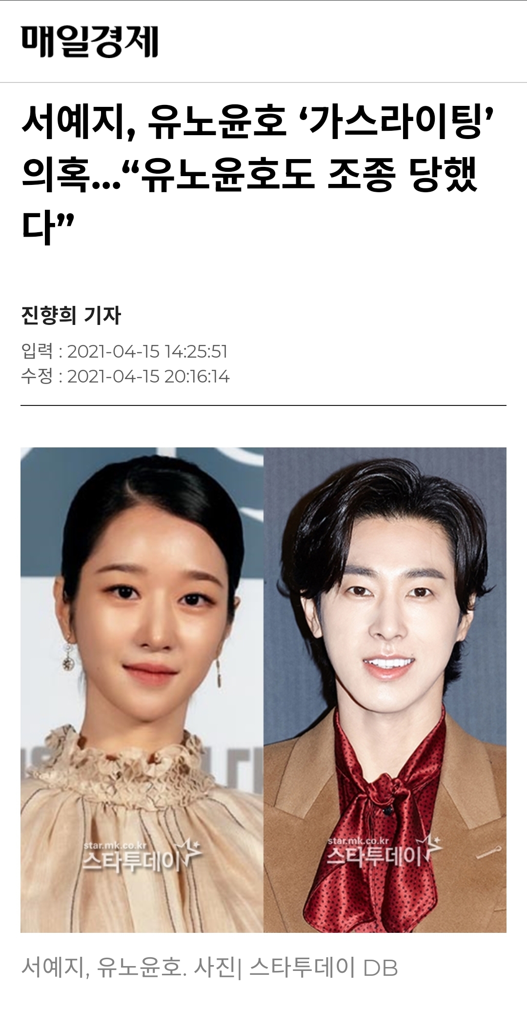 서예지, 유노윤호 ‘가스라이팅’ 의혹…“유노윤호도 조종 당했다” 2021.04.15