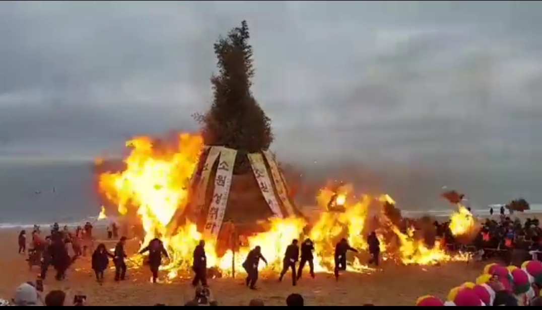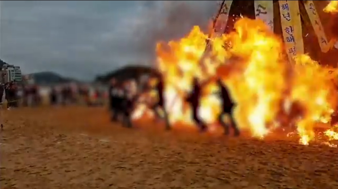 정월대보름 행사 중 달집태우기가 있습니다. 그런데 부산 송도에서 달집태우기 점화를 시도하는 시점에 펑하고 터지는 사고가 발생했습니다.