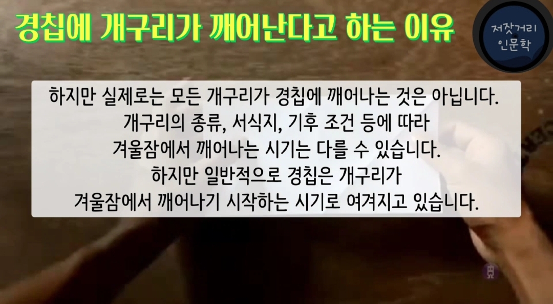 그래서 경칩에 개구리가 깨어난다고 하는 몇가지 이유를 정리해 보았습니다.