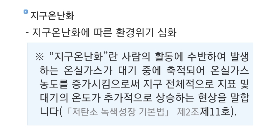 ※ “녹색생활”이란 기후변화의 심각성을 인식하고 일상생활에서 에너지를 절약하여 온실가스와 오염물질의 발생을 최소화하는 생활을 말합니다(「저탄소 녹색성장 기본법」 제2조제6호).