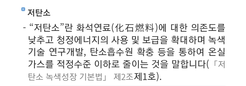 그래서 궁금함을 해소하기 위해 《저탄소》를 검색해 보았습니다.
