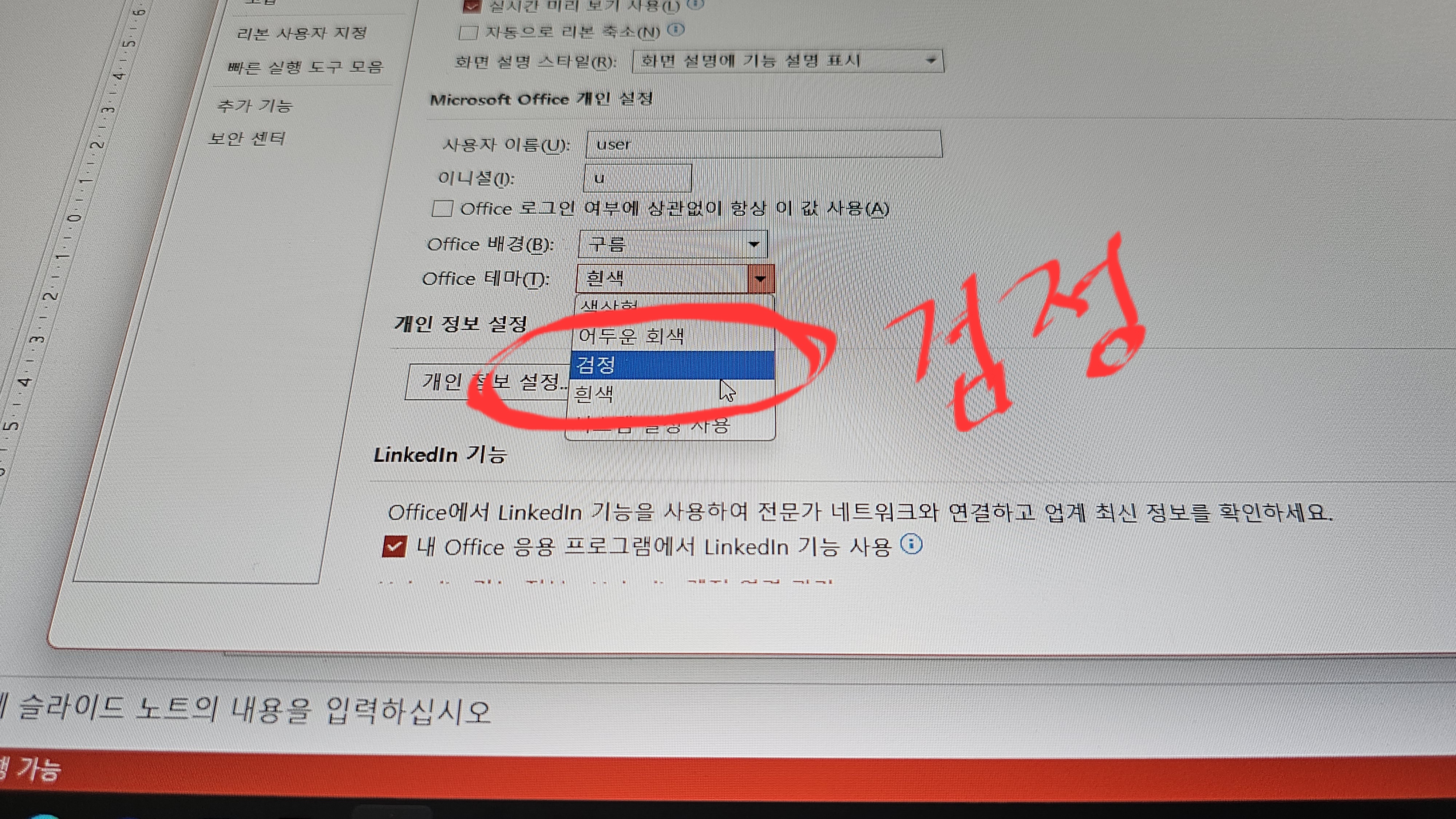 5. 팝업화면의 중앙에 보이는 《Office 테마》