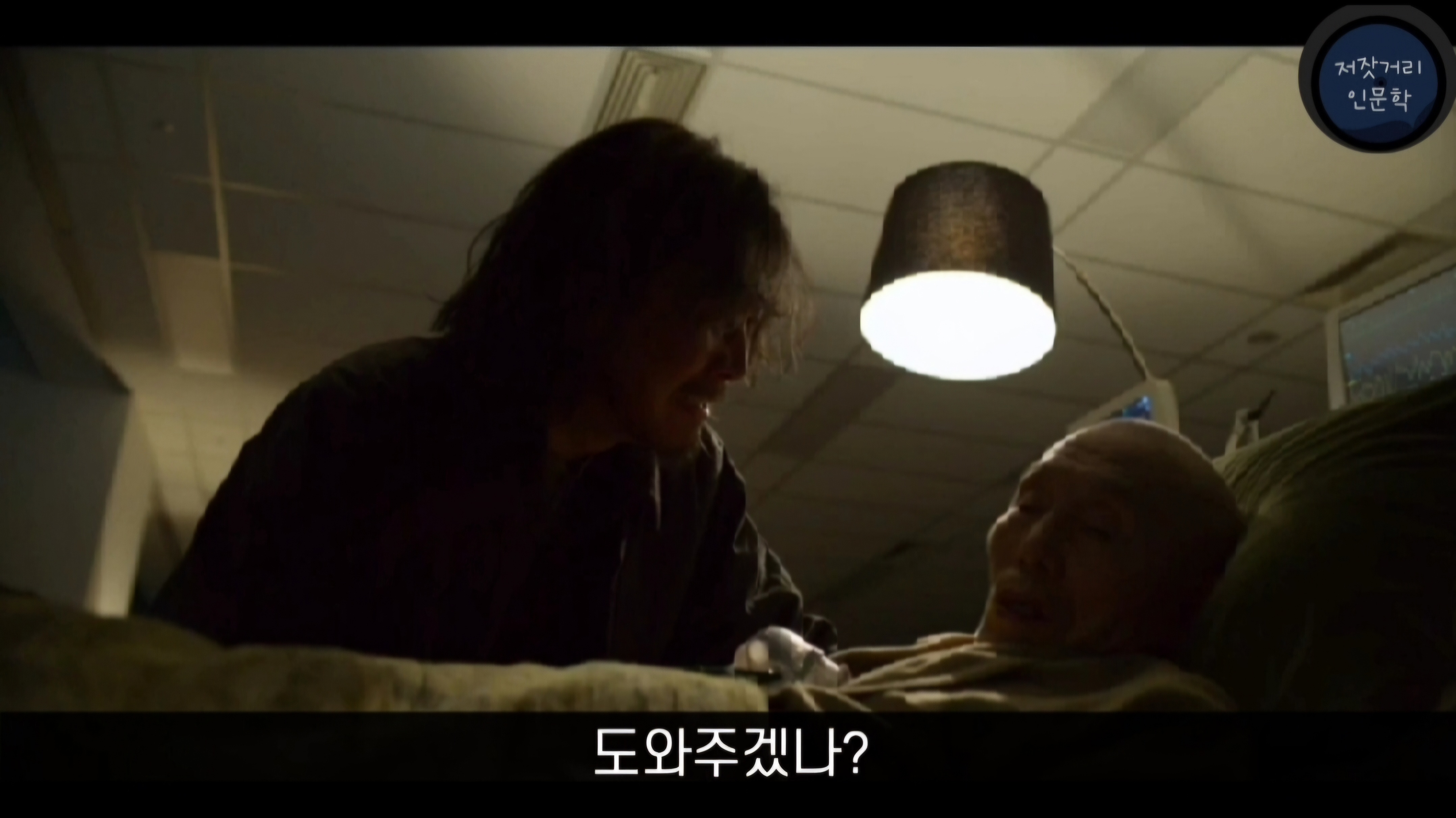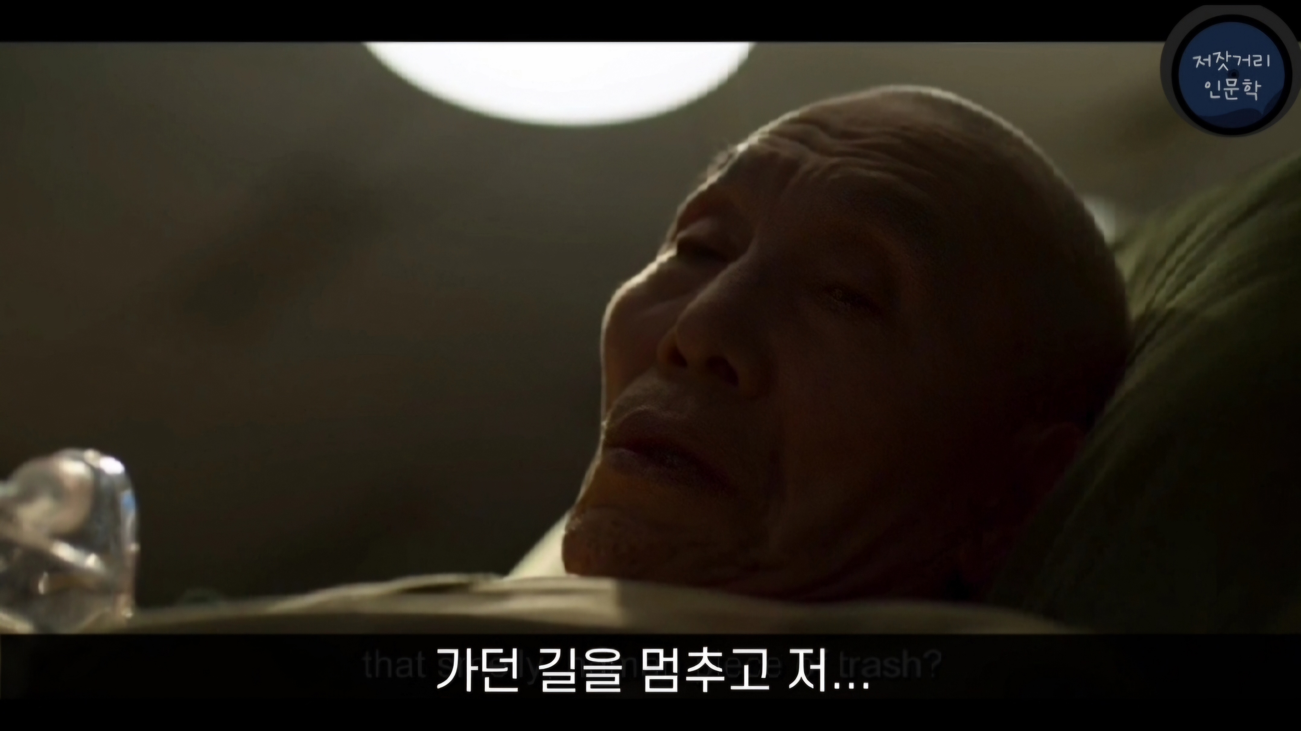 그리고는 눈내리는 창밖을 한참을 지켜봐도 노숙자를 도와주는 사람이 나타나지않자 깐부 할아버지의 인문학적 대사가 나옵니다.