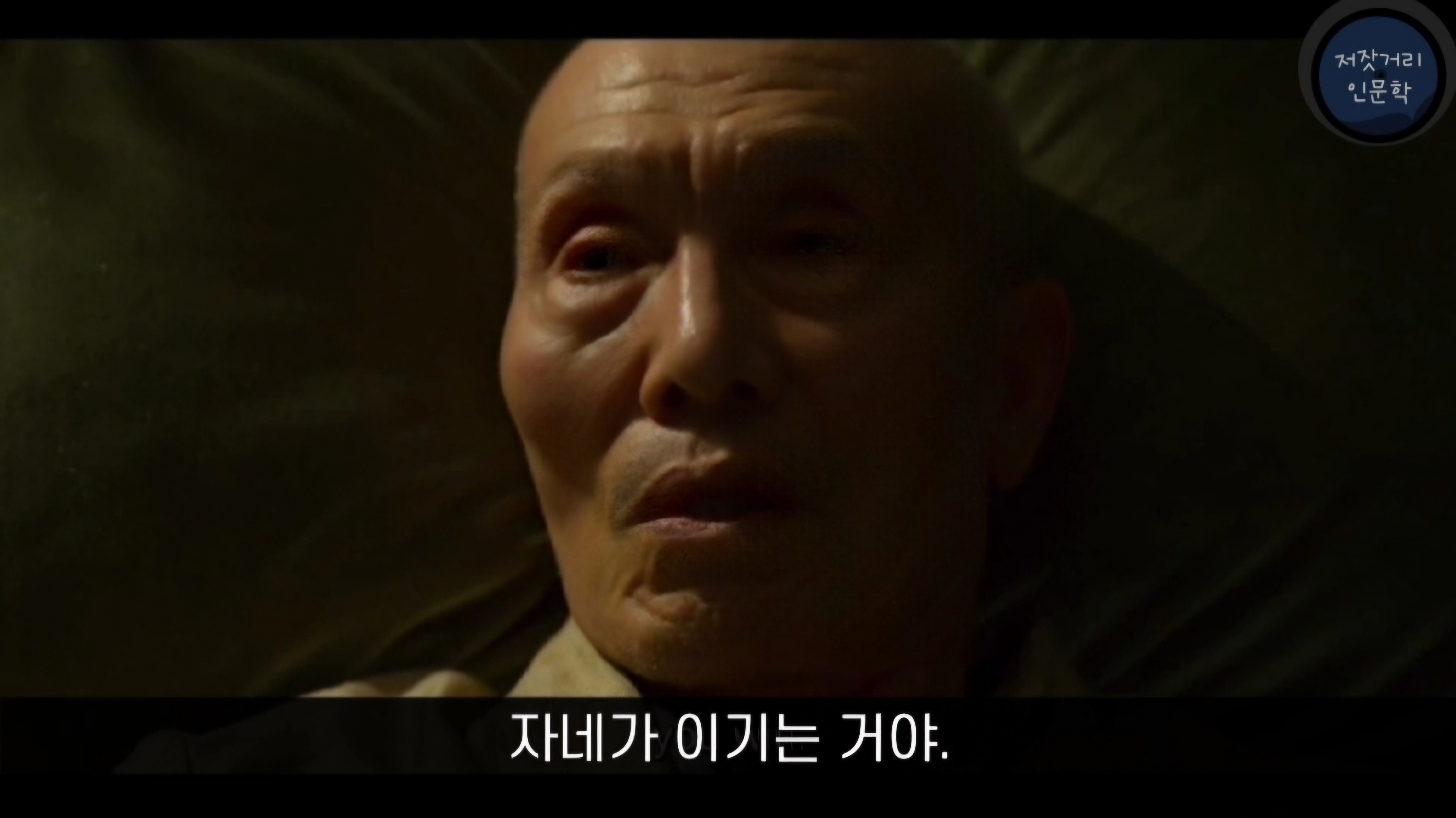 이정재가 깐부할아버지에게 《왜 내게 그랬냐》는 질문이 이어지는 가운데 벌어진 상황으로 본다면, 할아버지가 왜 그랬는지를 답해주는 장면이라 봐도 되겠습니다.