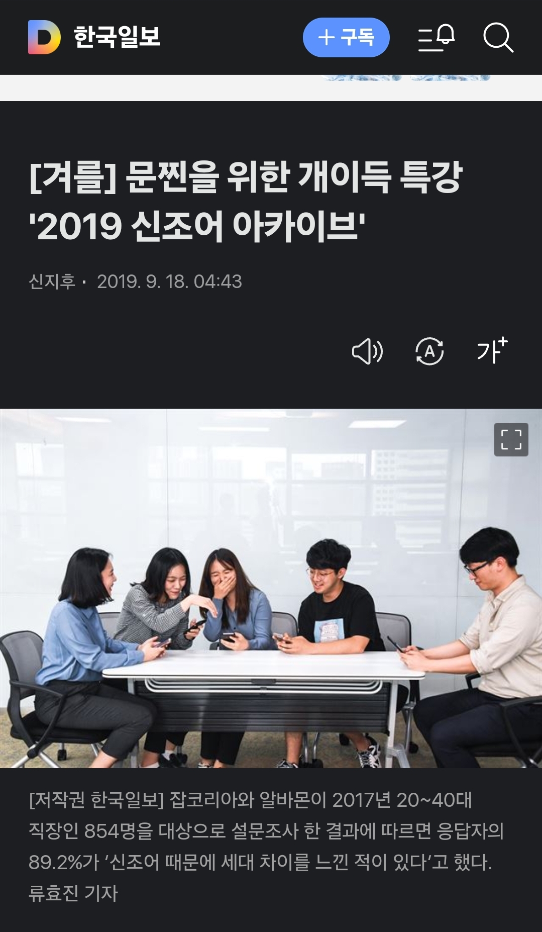 단어만 보곤 좀체 뜻을 알 수 없는 신조어에 당황해 본 경험이 적지 않을 것이다. 비단 5060세대 문제만은 아니다. 20대 조차도 10명 중 9명 이상이 ‘신조어 뜻을 이해하지 못해 검색해봤다’(잡코