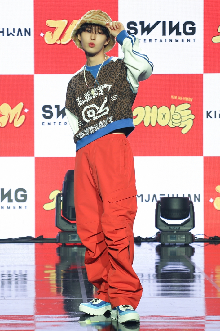 "하고 싶은 것들 다 포기하고요. 이번 활동을 위해서 모든 것을 쏟아부었습니다. 정말 마지막이라고 생각하고 임했습니다." 새 앨범명 '잼'(J.A.M)이라고 쓰인 반창고를 코에 붙이고 캐주얼한 의상