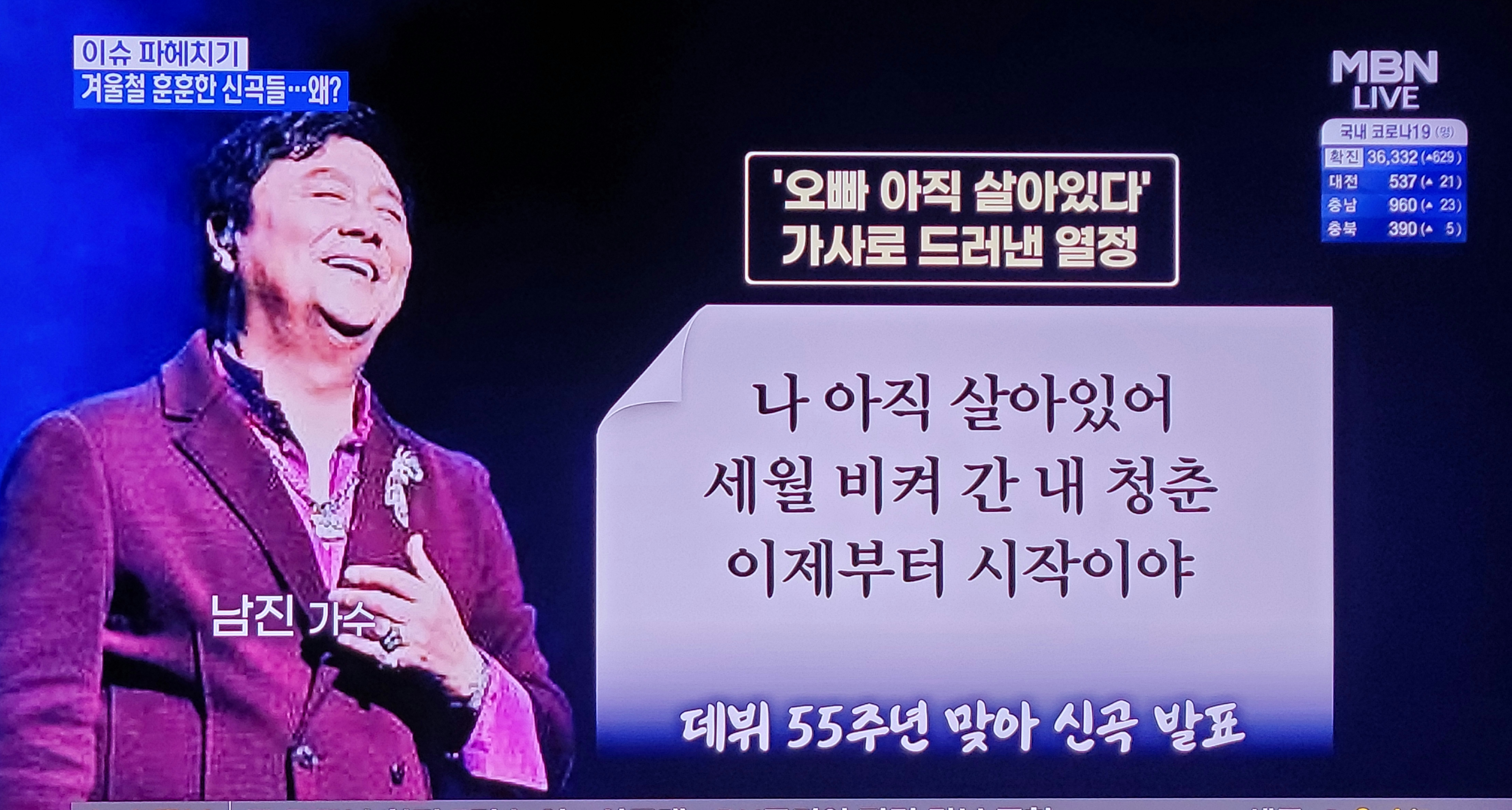 노래를 계속 듣다보니 어쩌면 대한민국의 오늘이 있게 만든 이시대 주인공 기성세대들을 다시 한번 더 건재하게 세워줄 위로의 노래가 되어주지 않을까 하는 기대도 생겨 납니다.