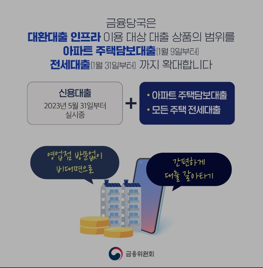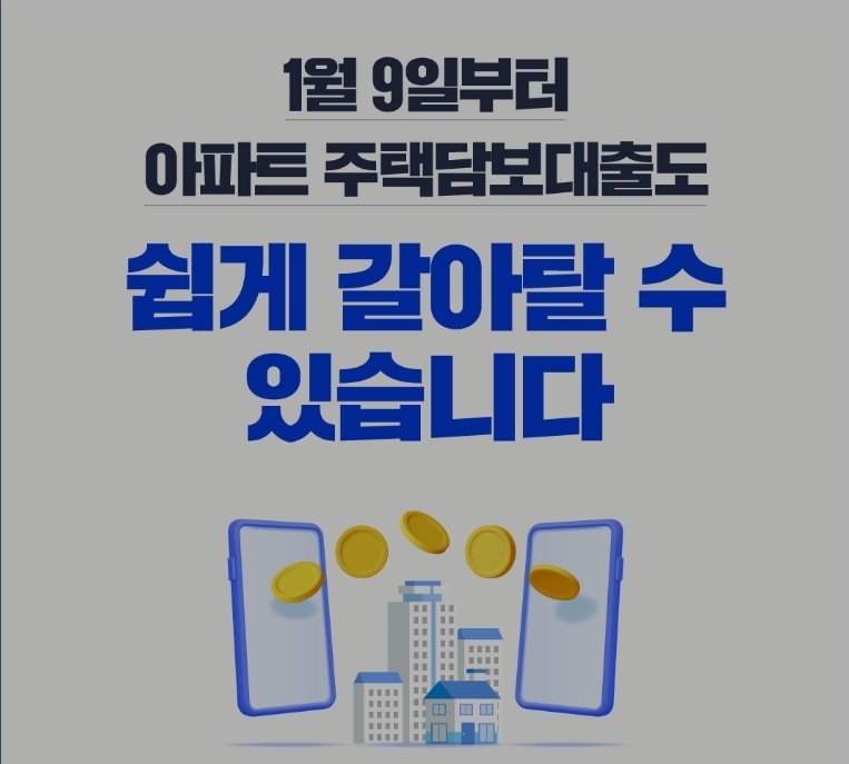 1월 9일부터 아파트 주택담보대출도 쉽게 갈아탈 수 있습니다 2024.01.09