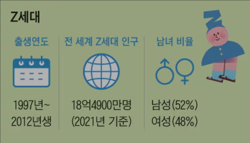 Z세대는 1990년대 중반에서 2000년대 초반에 태어난 세대를 가리킵니다.