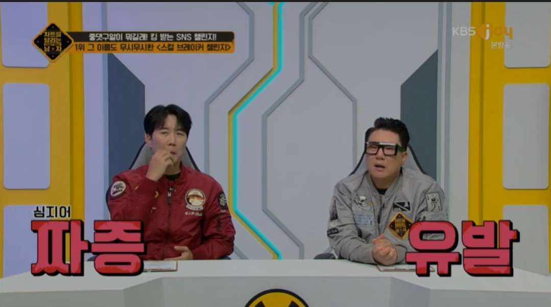 [뉴스엔 장예솔 기자] '차달남' 생명을 위협하는 위험천만한 챌린지가 공개됐다. 11월 4일 방송된 KBS Joy '차트를 달리는 남자'(이하 '차달남')에서는 '좋댓구알이 뭐길래! 킹 받는 SNS 챌린지!' 차트