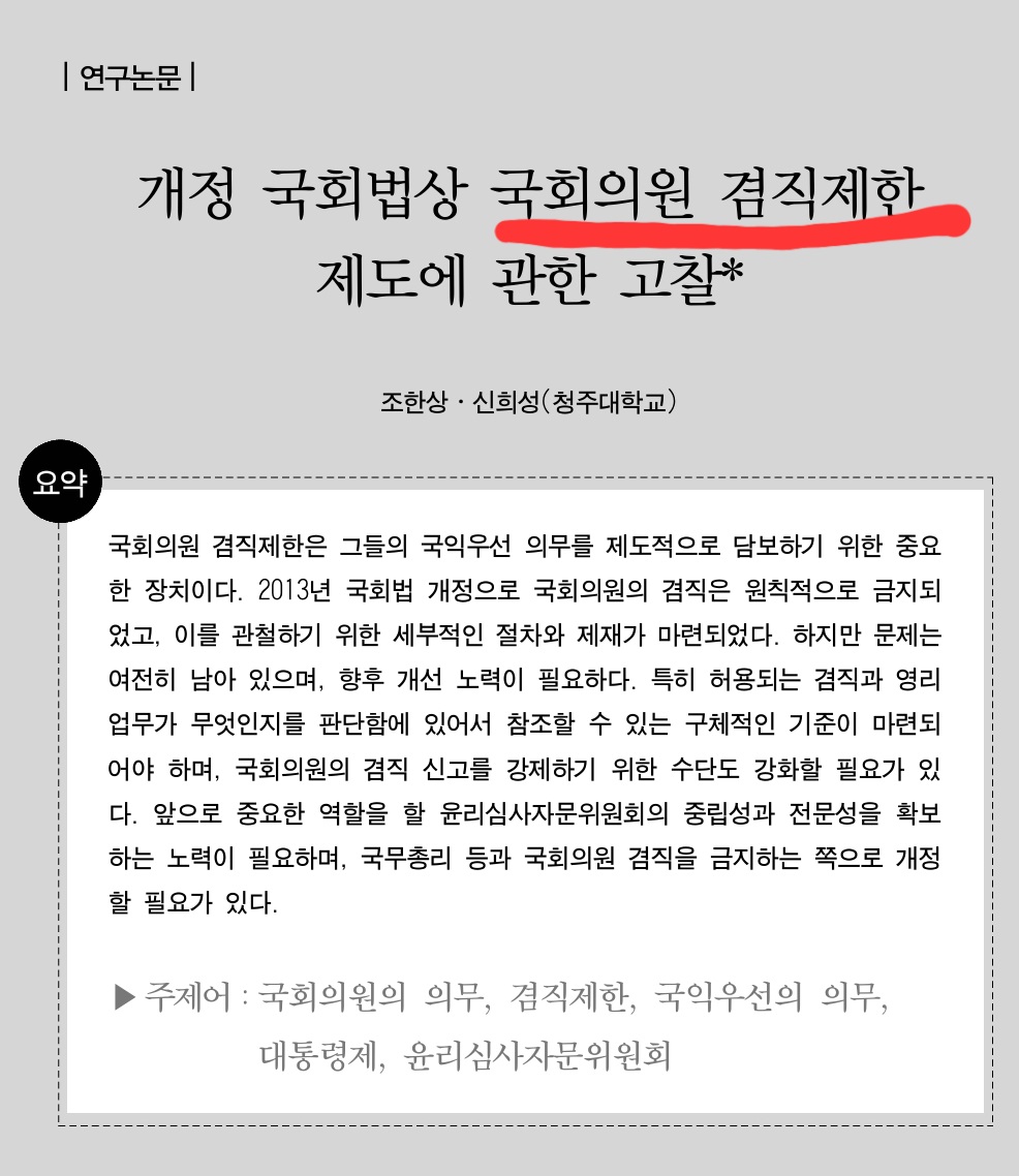 개정 국회법상 국회의원 겸직제한 제도에 관한 고찰*