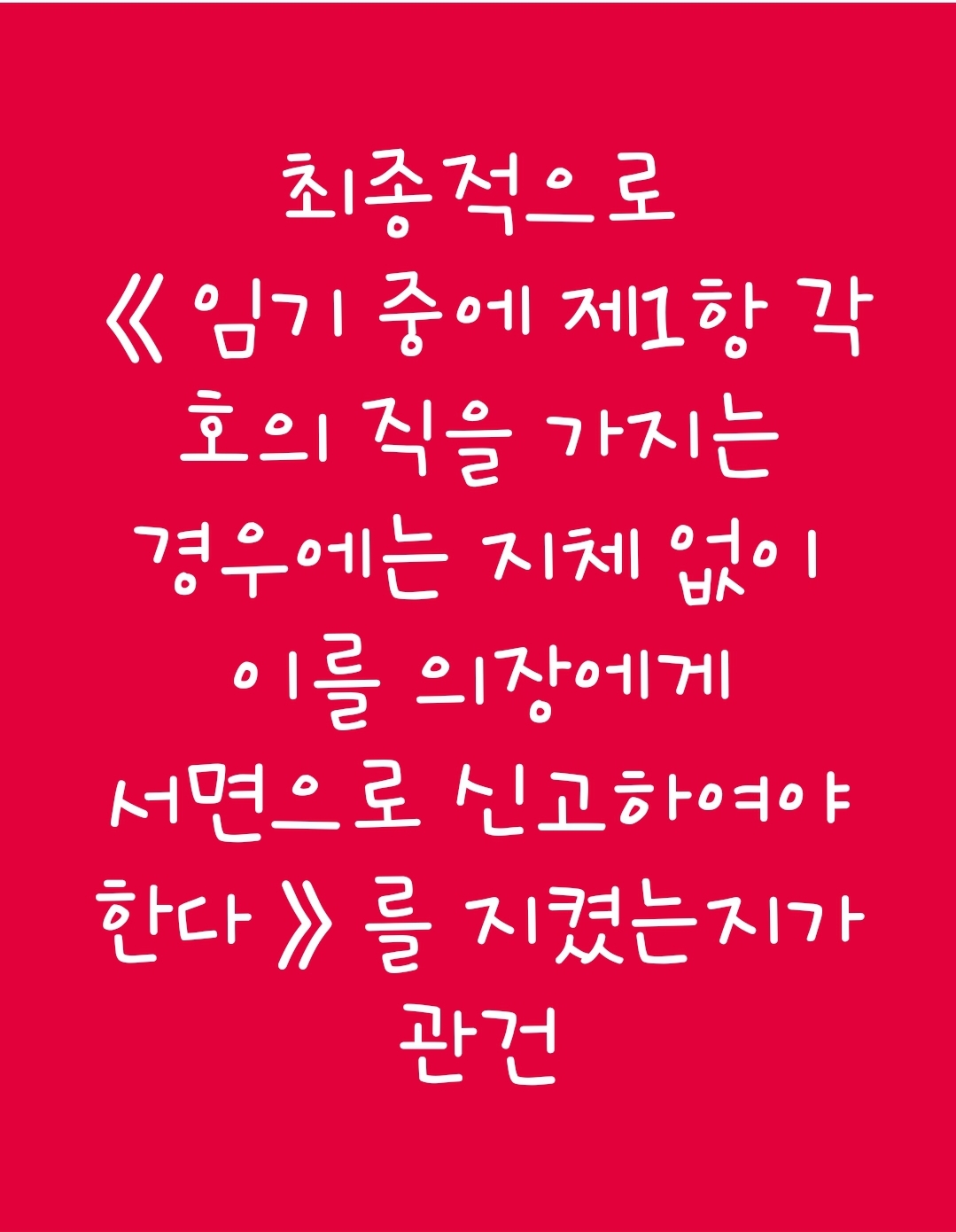💥💥③ 의원이 당선 전부터 제1항 각 호의 직(제3호의 직은 제외한다. 이하 이 조에서 같다)을 가지고 있는 경우에는 임기 개시 후 1개월 이내에, 임기 중에 제1항 각 호의 직을 가지는 경우에는 지체 없이 이를 의장에게 서면으로 신고하여야 한다.💥💥