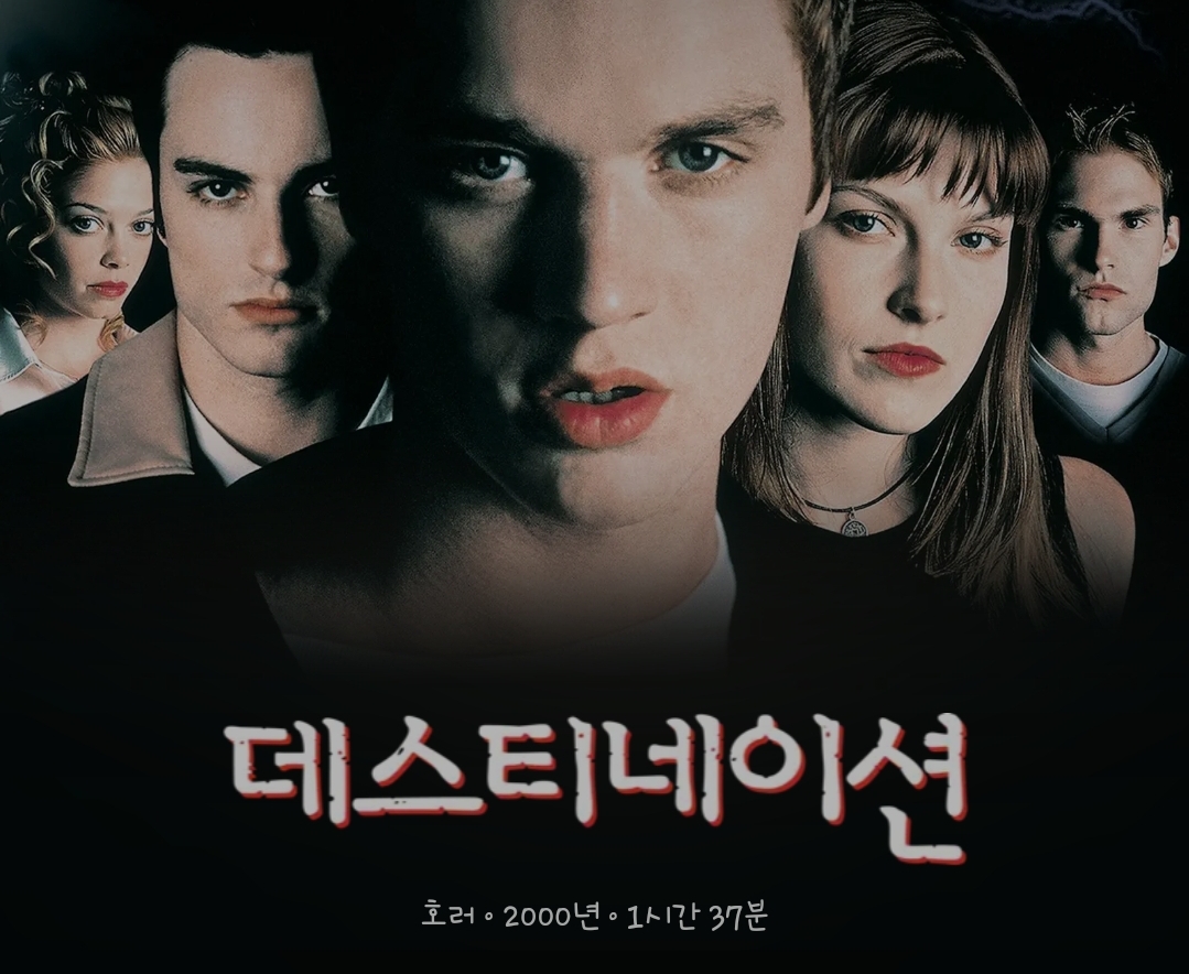 영화《데스티네이션》을 살짝 소개하자면, 프랑스어 학술동아리 친구들과 유럽행 비행기를 탄 알렉스 브라우닝(데본 사와)은 갑자기 비행기가 이륙 직후에 폭발해서 탑승객이 모두 사망할 거라는 불길 한 예감이 들게 됩니다. 알렉스는 크게 놀라서 비행기에 서 내려야 한다고 사람들에게 외치면서, 소동을 부렸다는 이유로 알렉스와 6명의 사람은 비행기에서 강제로 내리게 됩니다. 그로인해 이들은 알렉스가 예견한 비행기 폭발 사고에 휘말리지 않게 됩니다. 하지만 영화는 이들을 살려두지 않았고, 죽음을 피한 7명의 사람이 한 명씩 돌연사하게 됩니다. 결국 알렉스는 친구들과 함께 죽음의 운명에서 벗어나기 위해 발버둥치게 된다는 내용의 영화가 되겠습니다.