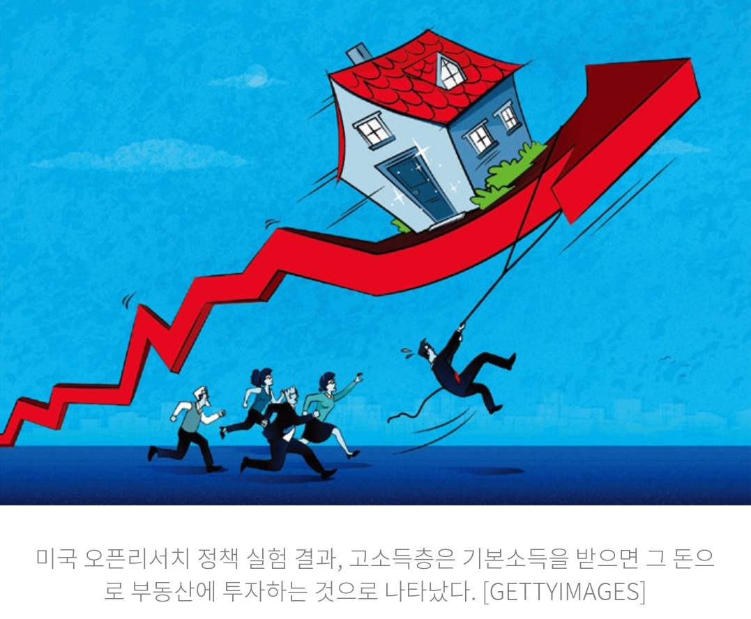 기본소득 시행되면 고소득층 선호하는 집값 뛴다 [돈의 심리] 미국 오픈리서치 실험 결과:..고소득층 지출중 '집 렌트비'만 증가 2024.08.10