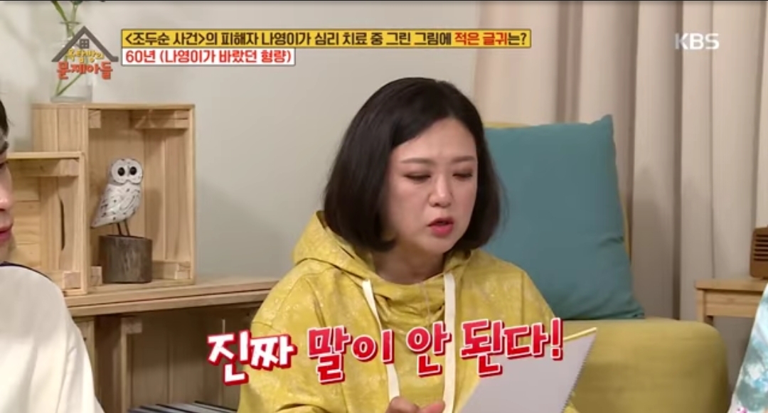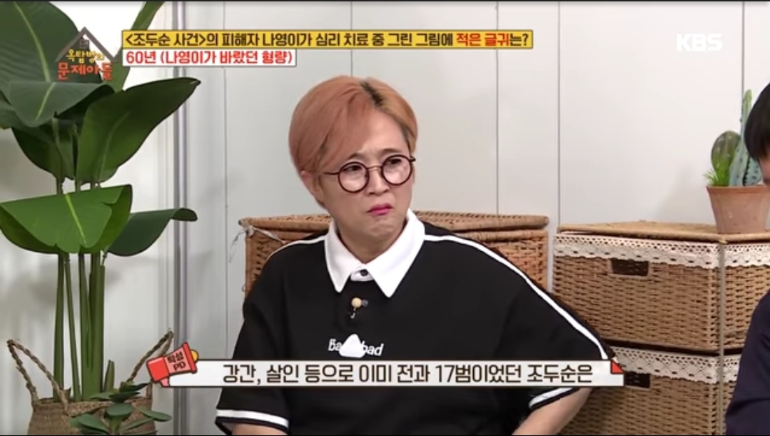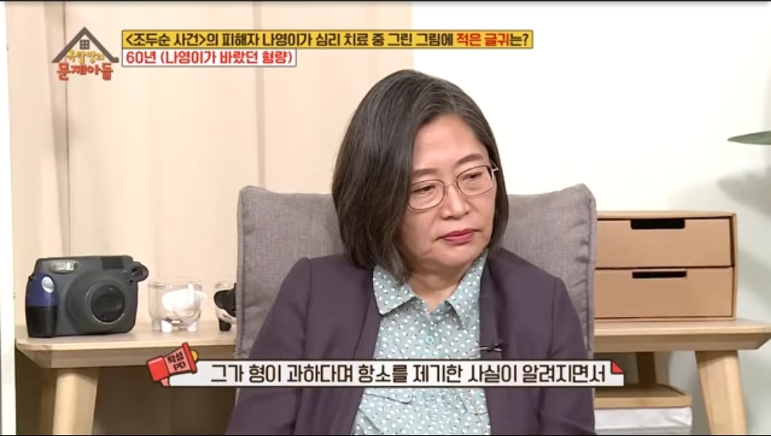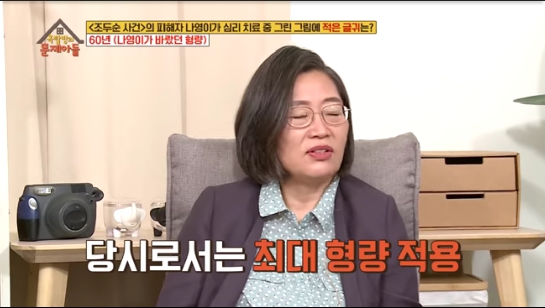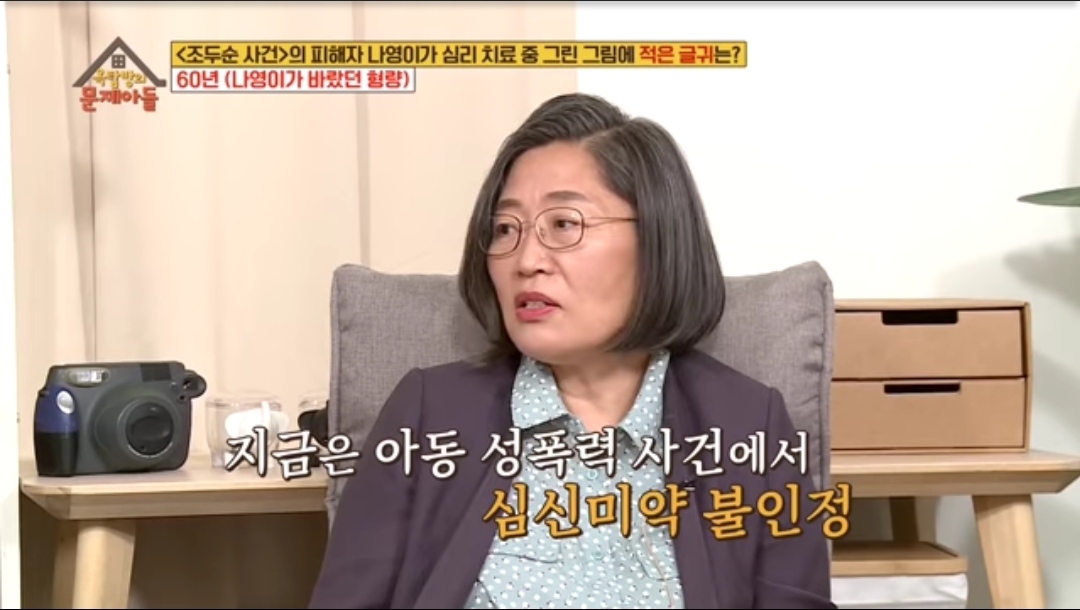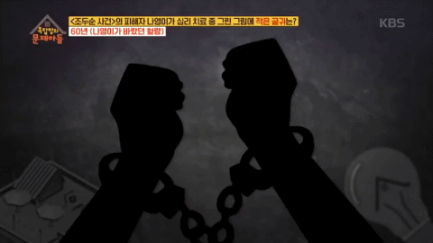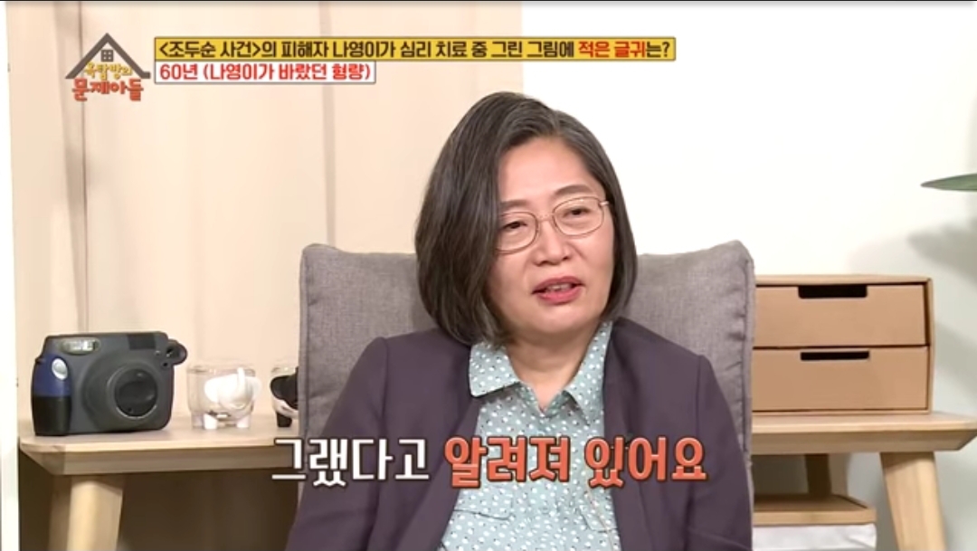 그런데 조두순 사건 피해자인 나영이의 심리 치료 중 그린 그림에서 작은 글귀가 있었다는 내용이, <옥탑방의 문제아들>이라는 TV프로그램을 통해 알려지게 됩니다.