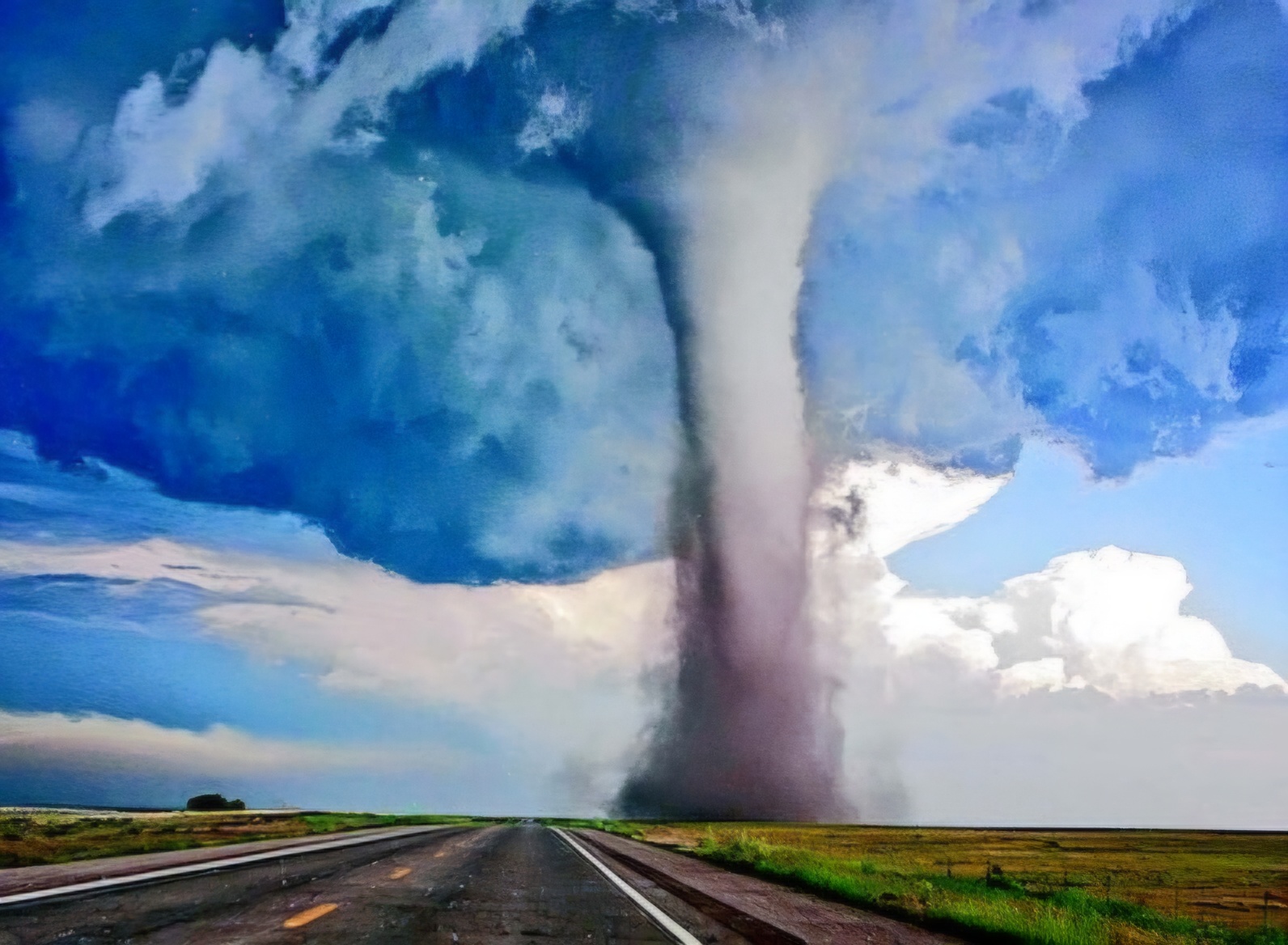 🔺️ 깔대기 구름 형성 : 지면과 연결된 깔대기 모양의 구름이 형성되면 토네이도가 완전히 발달한 것입니다.