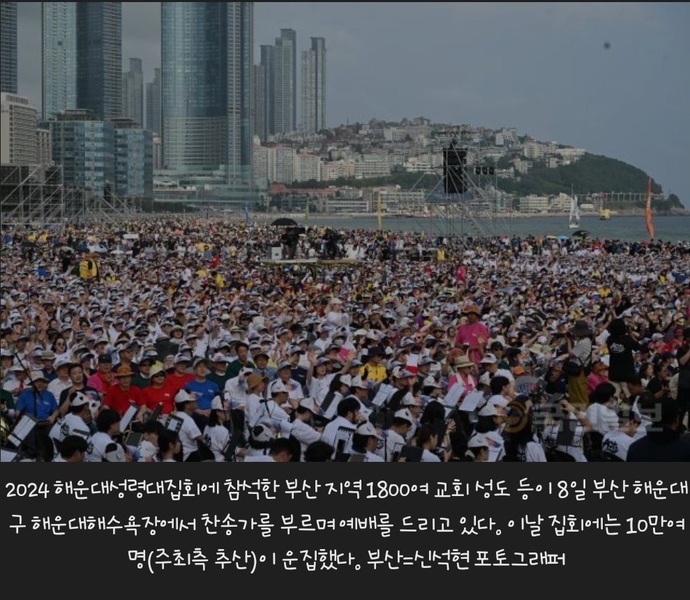 “나부터 회개·오직 예수만”…해운대 백사장 뒤덮은 10만 기도소리 2024.09.08