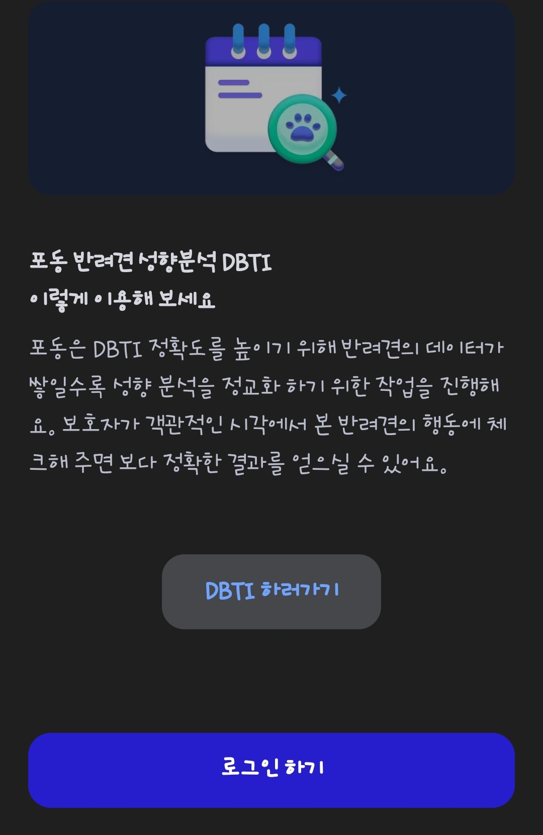 아무래도 반려견 테스트인거 같은데, 내용이 궁금해 집니다. 그래서 검색을 해보니 어플(반려인 필수앱 포동)이 나오기에 조금만 살펴 보려 합니다.