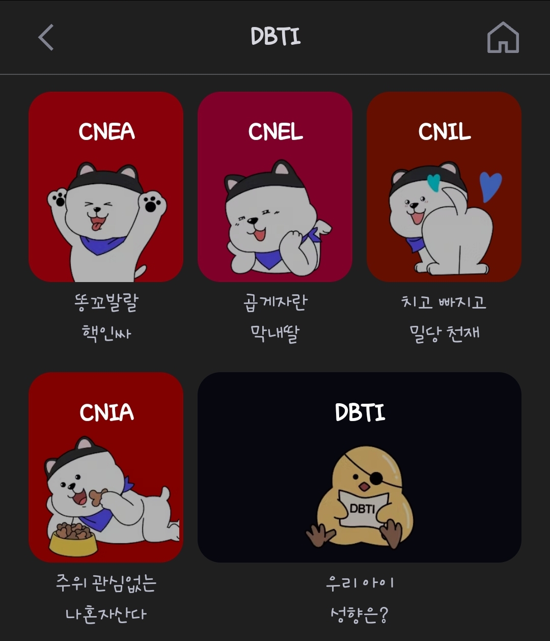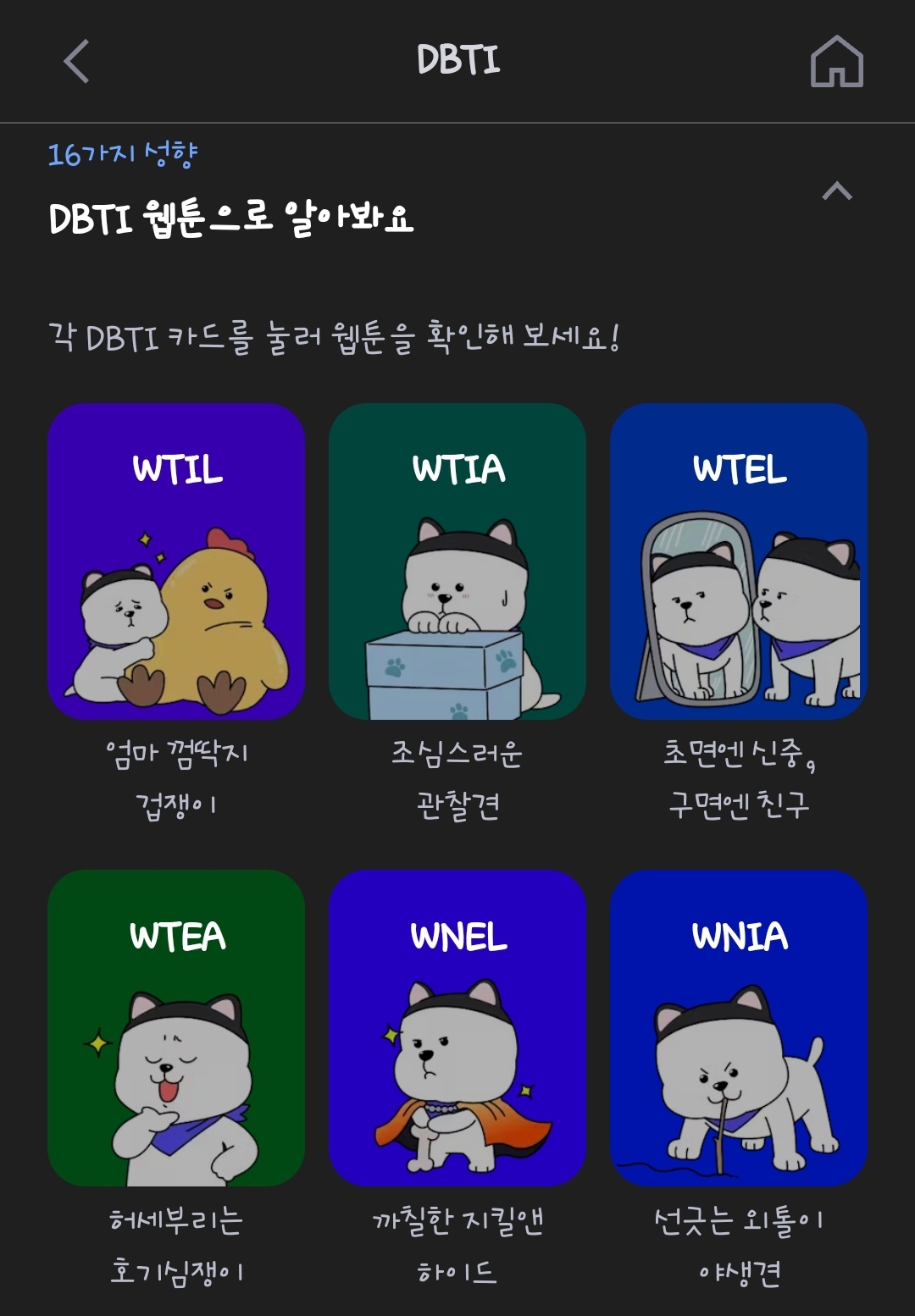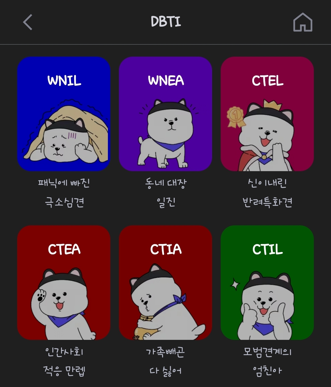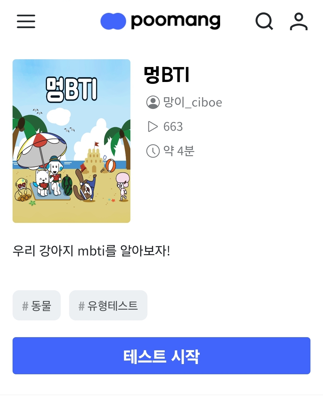 직접 해보길 희망하는 분은 아래 링크에 접속해서 우리집 댕댕이의 멍BTI 성향을 알아보시면 되겠습니다👌