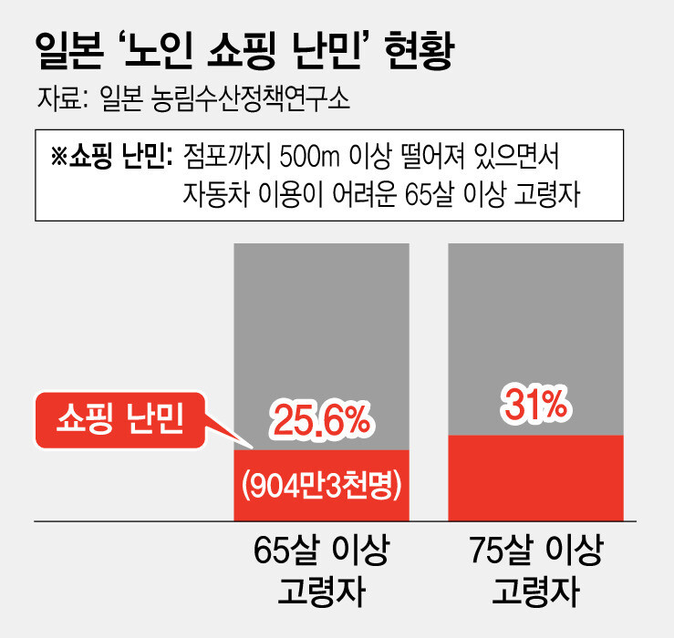 일본 노인 4명 중 1명은 ‘쇼핑 난민’…먹거리 구하기 힘들어