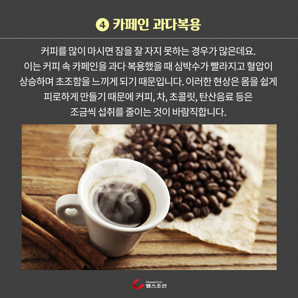 ▲그 밖에 약물의 과다복용이나 부작용이 피로의 원인일 수 있다. 술(알코올)과 커피(카페인) 이외에 수면제, 안정제, 소염진통제, 고혈압 치료제, 먹는 피임약 등이 피로한 증상을 불러올 수 있다.