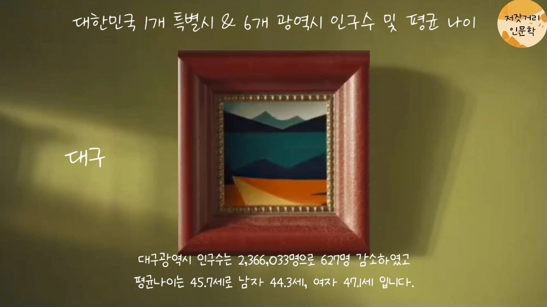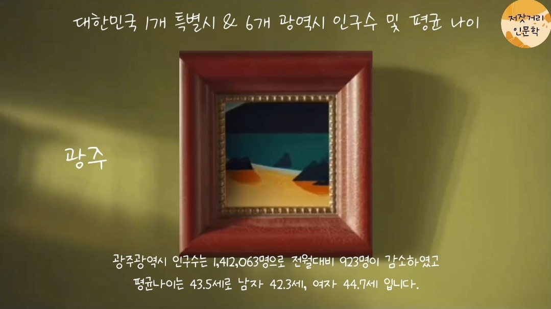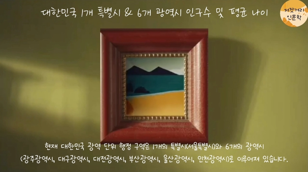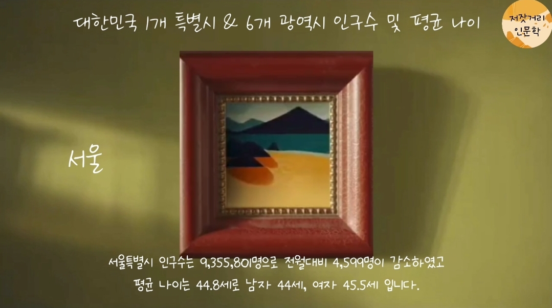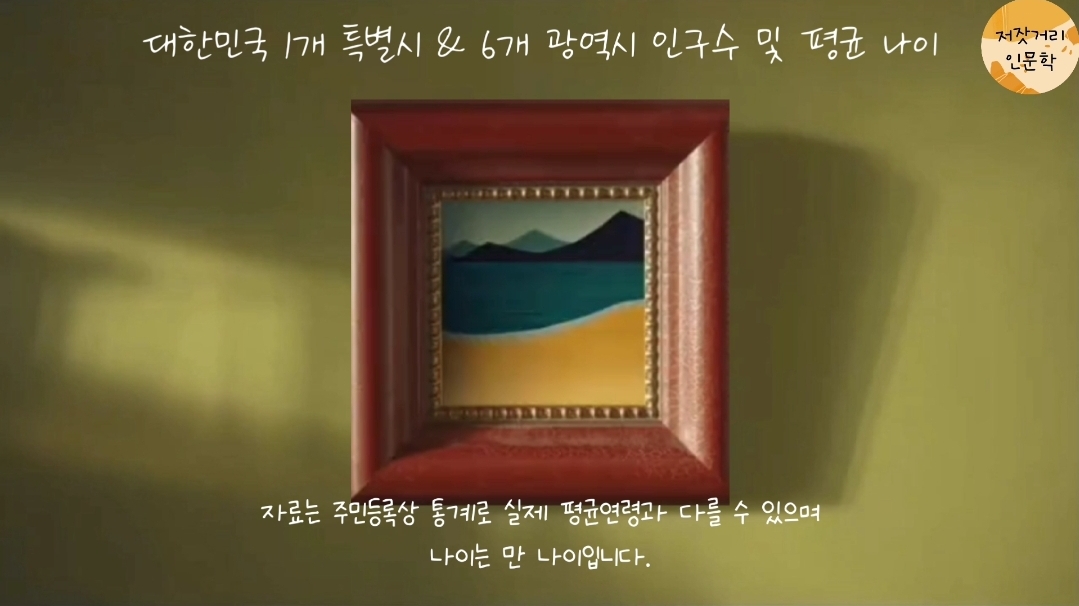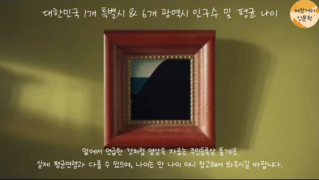 앞에서 언급한 것처럼, 영상속 자료는 주민등록상 통계로 실제 평균연령과 다를 수 있으며, 나이는 만 나이 이니 참고해서 봐주시길 바랍니다.
