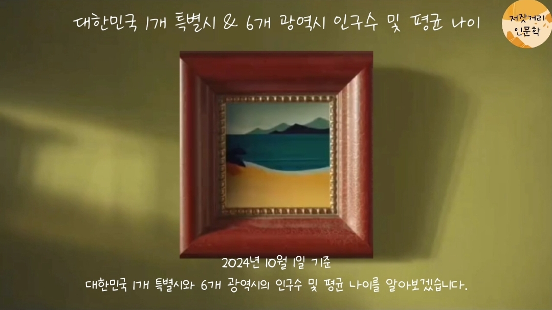 2024년 10월 1일 기준, 대한민국 1개 특별시와 6개 광역시의 인구수 및 평균 나이를 알아보겠습니다.