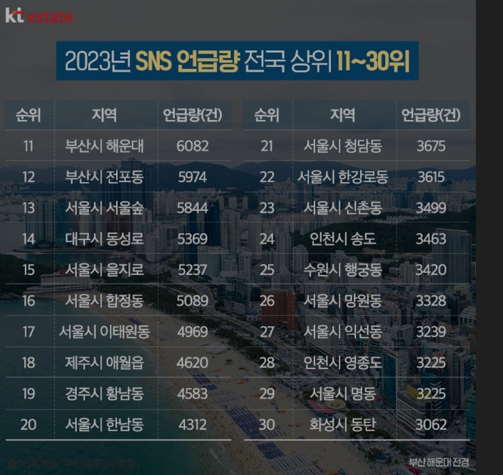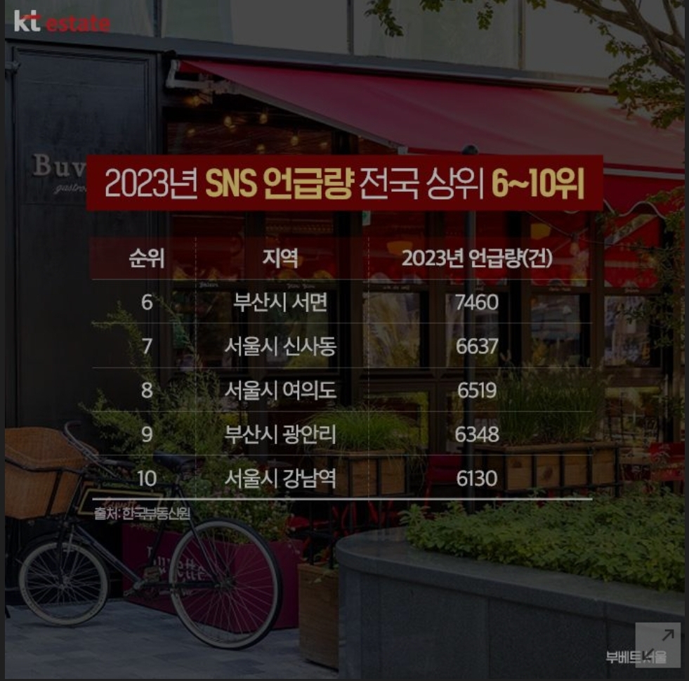 🎈또한, 인근 부산시 전포동(전리단길)도 5974건으로 12위에 올랐습니다.