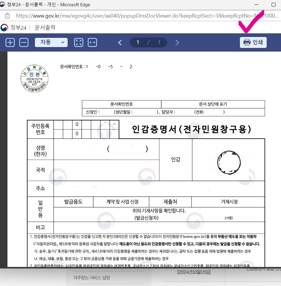 💢 드디어 인감증명서도 인터넷 발급이 가능하게 되었습니다.