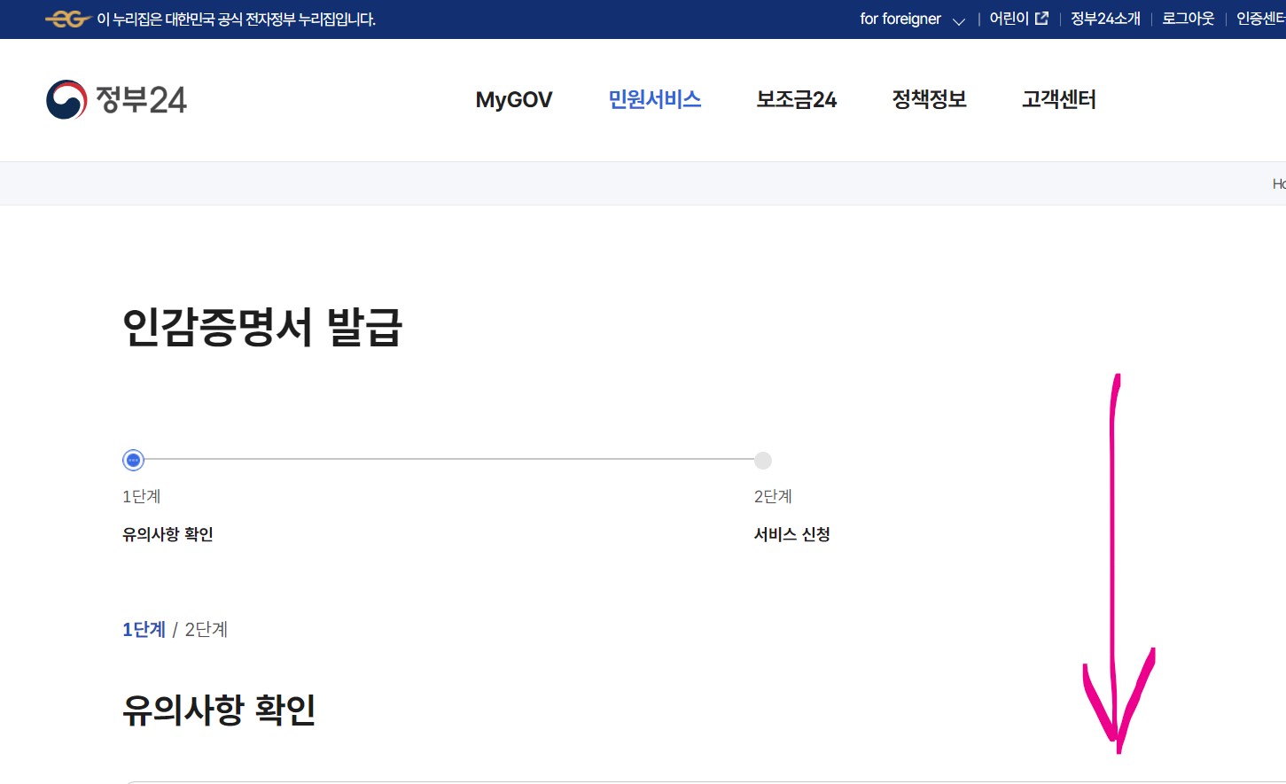 8. 제대로 들어왔으니 1단계 진행을 위해 아래로 내려 갑니다.